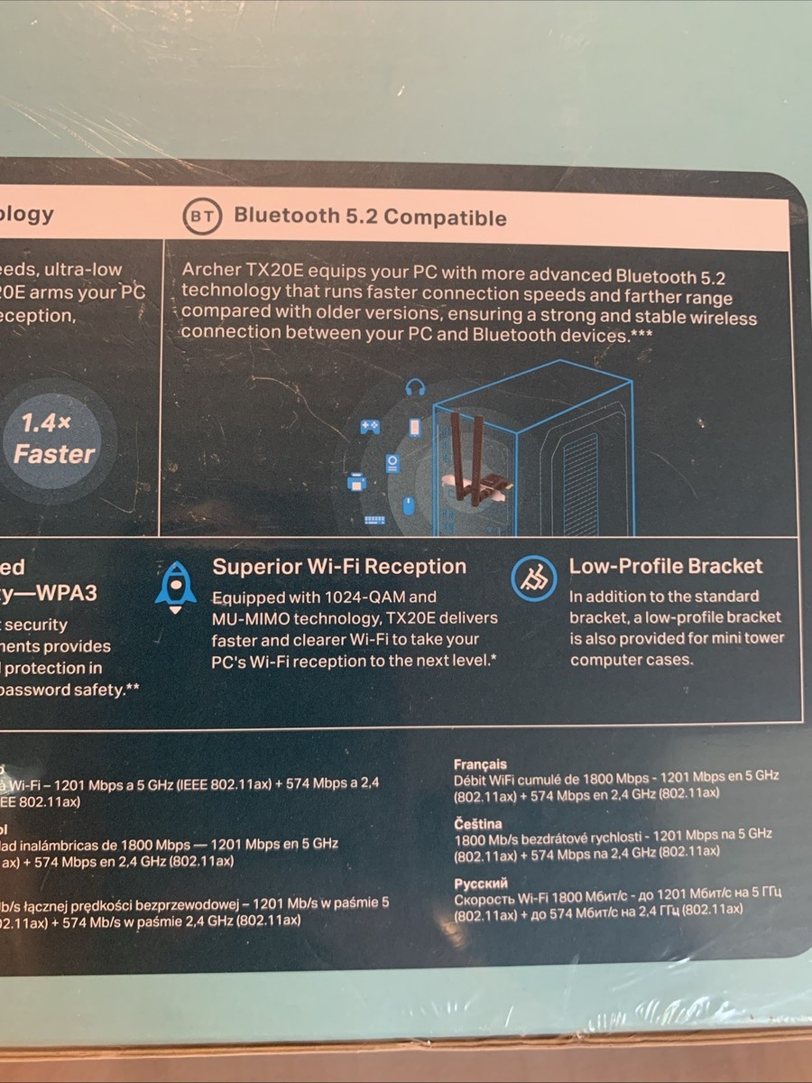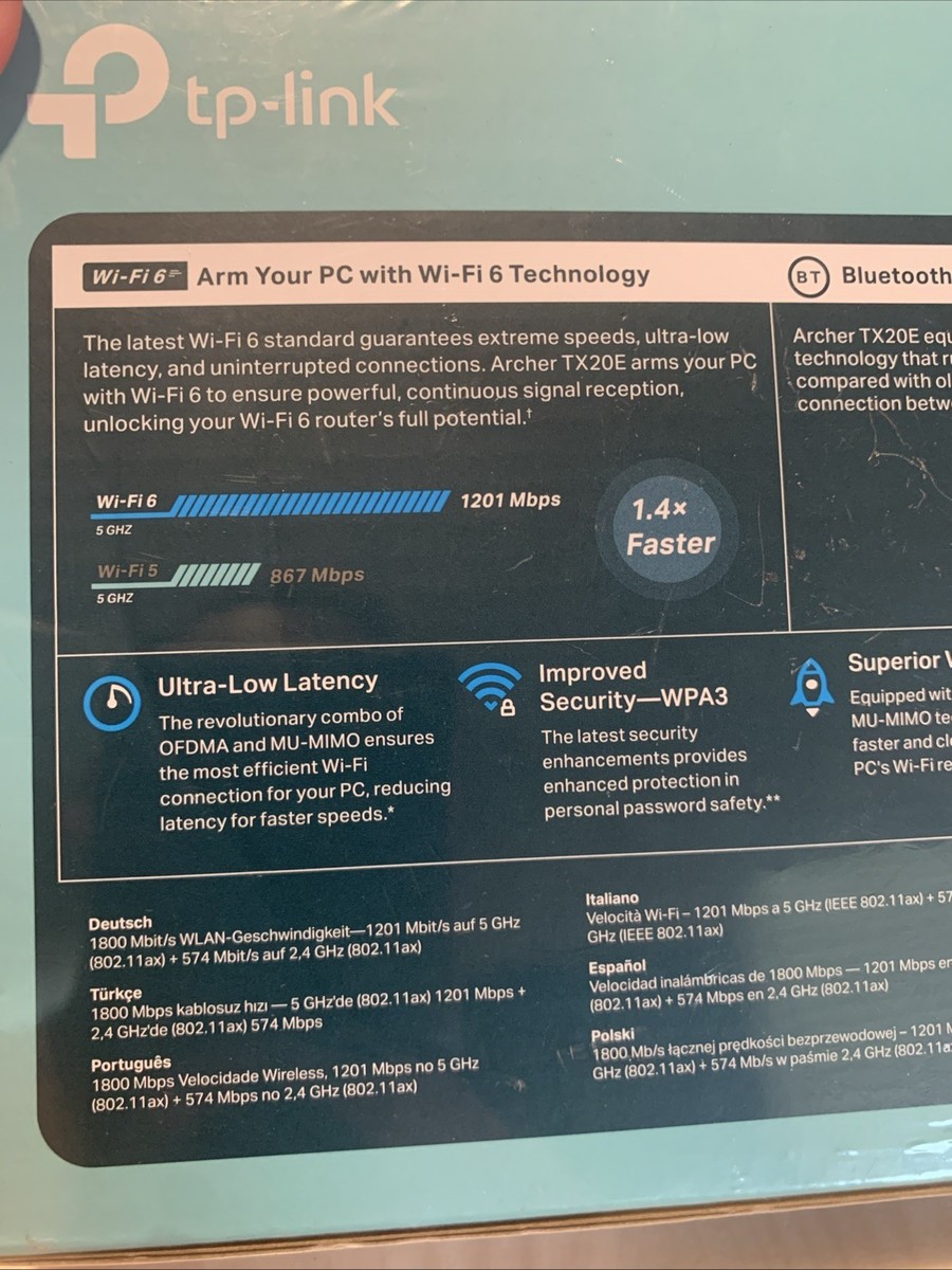 The TP-LINK Archer TX20E 1201 Mbps Bluetooth 5.2 Wider WIFI 6 Coverage PCle Adapter is a high-performance network card suitable for various brands like Alienware, ASUS, and Dell. With a maximum data rate of 1201 Mbps and compatibility with Windows 10/11 operating systems, this PCI Express adapter provides reliable and fast wireless connectivity for your computer. The sleek black design and dual ports make it easy to enhance your network capabilities and enjoy a seamless online experience.
