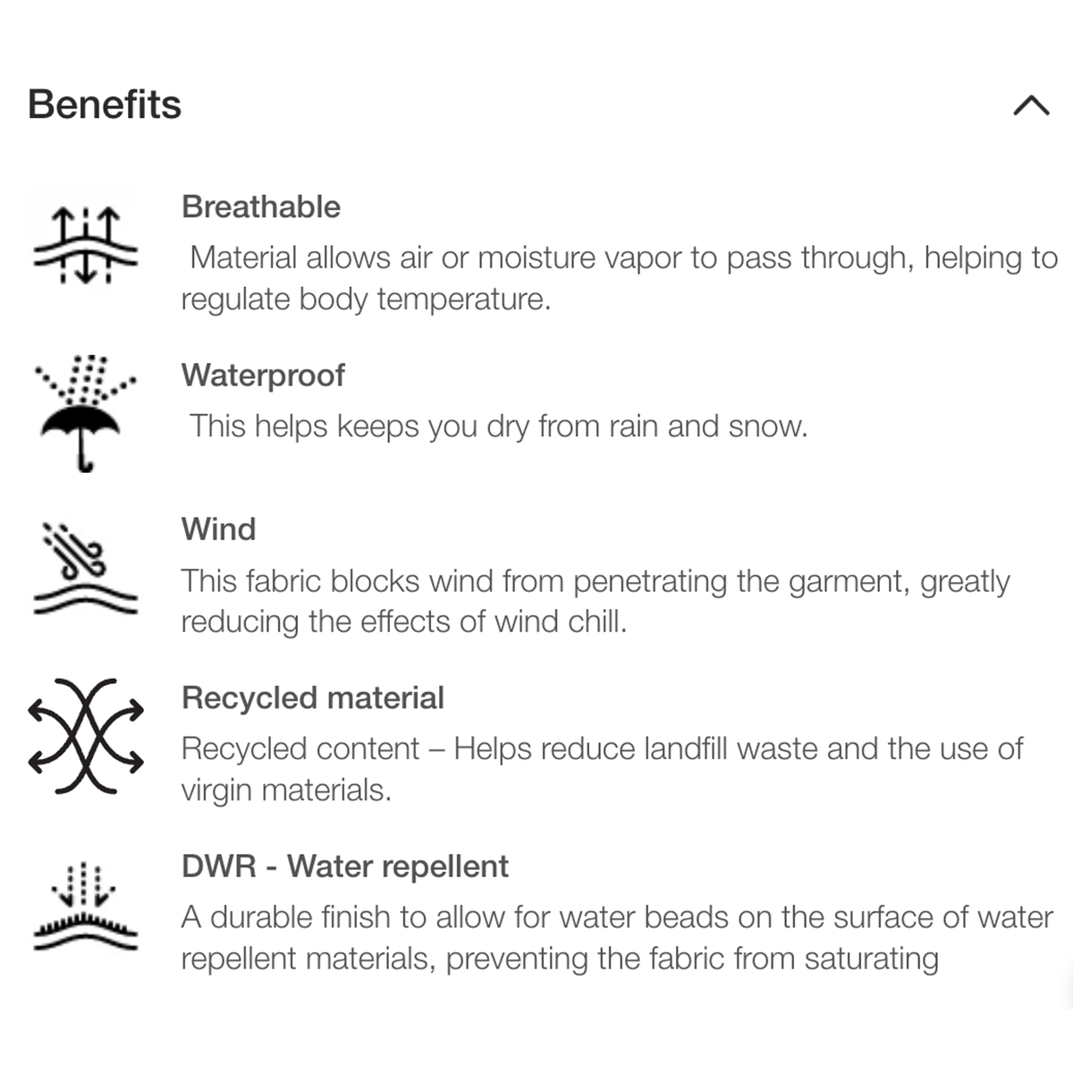 Waterproof, breathable, seam-sealed DryVent? 2L shell with a non-PFC DWR finish helps keep you dry