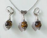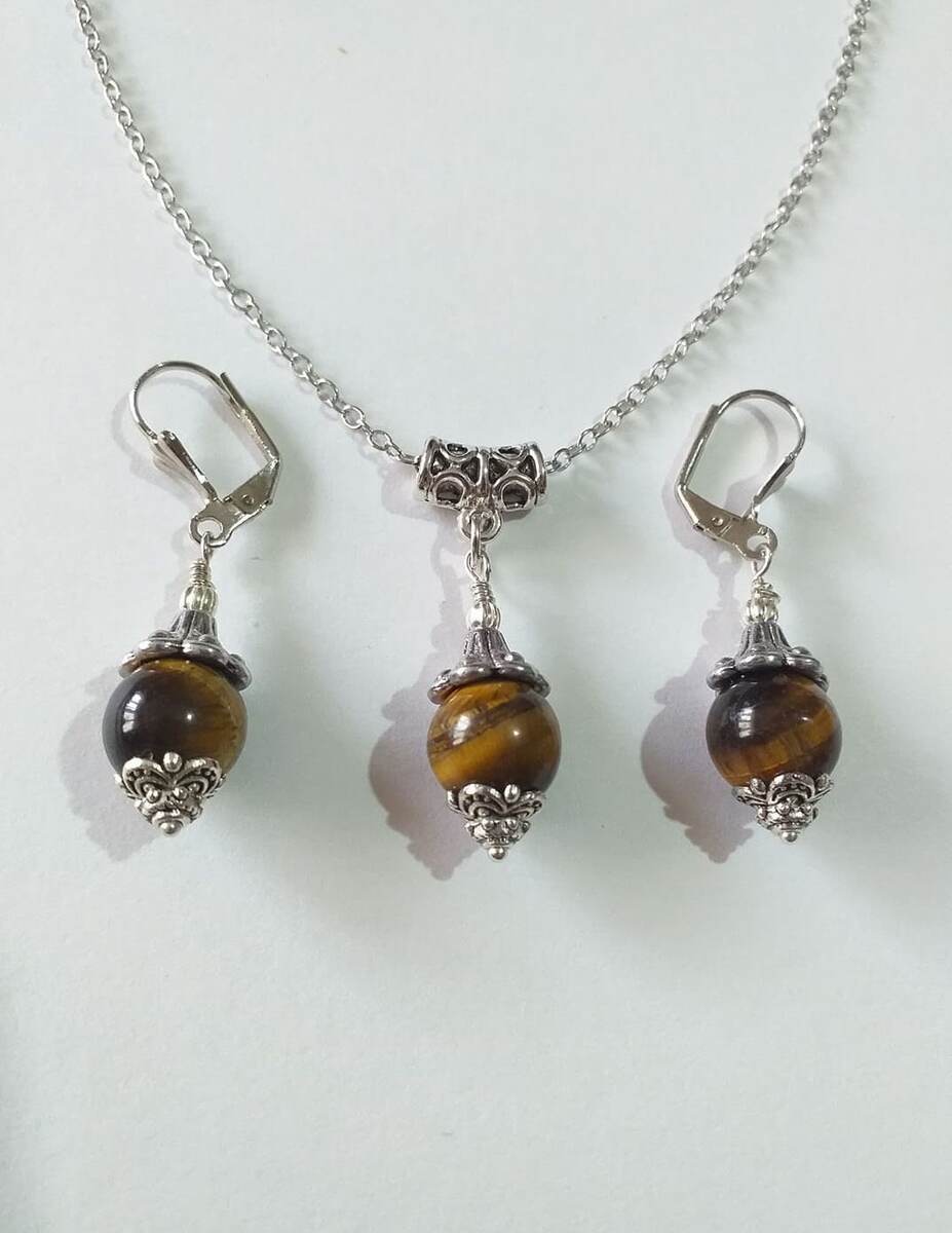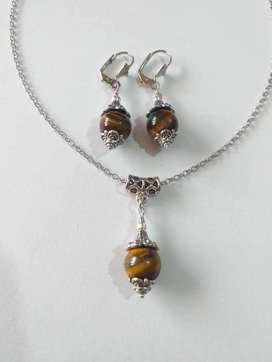 Beautiful Set of silver-tone Antique style Tiger eye necklace and earrings . Silver tone pendant Boho style necklace and earrings . Boho necklace . Bohemian necklace and earrings . Romantic necklace and earrings . Beautiful necklace with same style earrings with Tiger eye.
