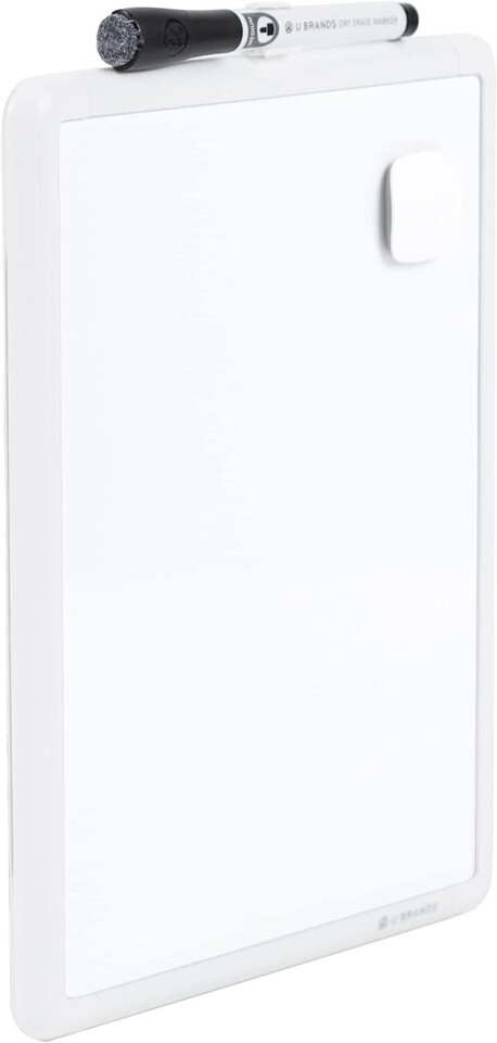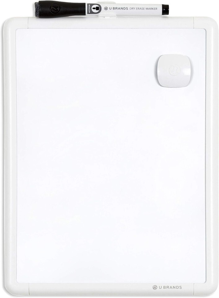 About this item CREATE AND COLLABORATE: Enhance your workspace, set your ideas free and boost your productivity with this 8.5"x11" magnetic white modern framed dry erase board; a smart purchase perfect for any office, classroom, or home VERSATILE AND MAGNETIC: This whiteboard is a magnet for creativity; the magnetic steel surface allows you to attach notes, photos, and more, making it perfect for both writing and displaying your ideas; includes marker, marker clip, and magnet HASSLE-FREE MOUNTING: Effortlessly hang this board vertically or horizontally with included hassle-free strong grip mounting strips; less time spent on installation means more time to jot down notes brainstorm and showcase your creativity STAIN-FREE SURFACE: Designed to resist stains and ghosting, free from messy marks or remnants of previous ideas, our premium painted steel surface ensures a clean slate every time you write, draw, or erase; unleash your creativity without limitations DESIGNED BY U: We are a company of designers, innovators, and trendsetters; a team of individuals who greatly respect the process, we remain passionate about providing well-designed products that will help you feel inspired