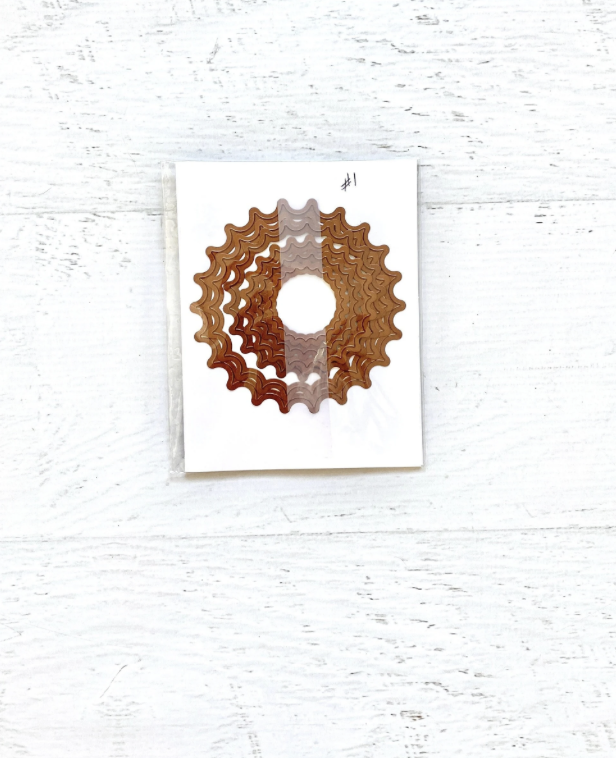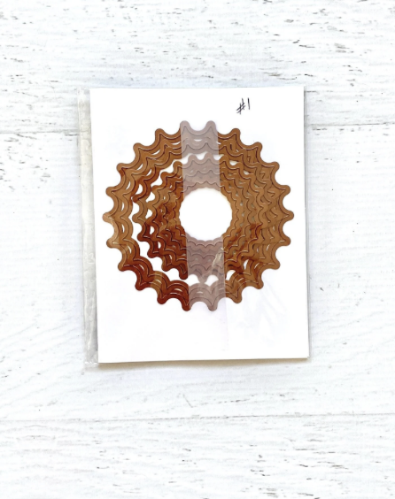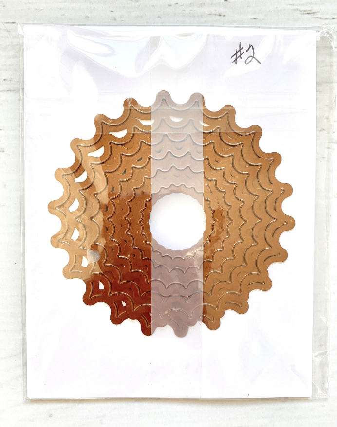 These beautiful Reverse Scallop/Sunburst shaped dies will cut the paper to make a beautiful addition to your card, scrapbook, or other paper crafting project. The 12 piece set measures ~2.5 inch diameter (largest die) down to 1 inch diameter (smallest die). This die set has 12 circles with points on the edge. These beautiful sunburst can be used on your project as foreground or for a background. These ornate die cut shapes ares very versatileโ-cut it in any color or multiple colors to go with the color scheme of your card, scrapbook page or art journal page or just use them nested and make a frame. This die set will work with most die cutting machines. This die is gently used but still cuts beautifully! This die is not in its original packaging.