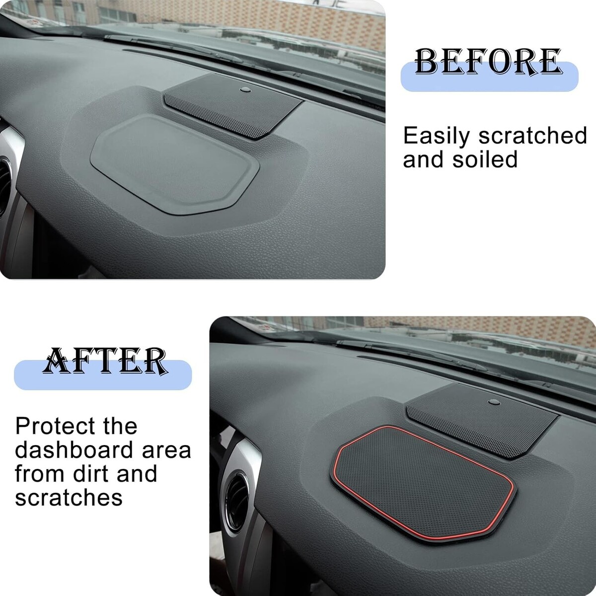 The dashboard mat covers the entire upper space of the dashboard to prevent it from being scratched or cracked, as well as debris, slight spillage, melted candy, and scratches.