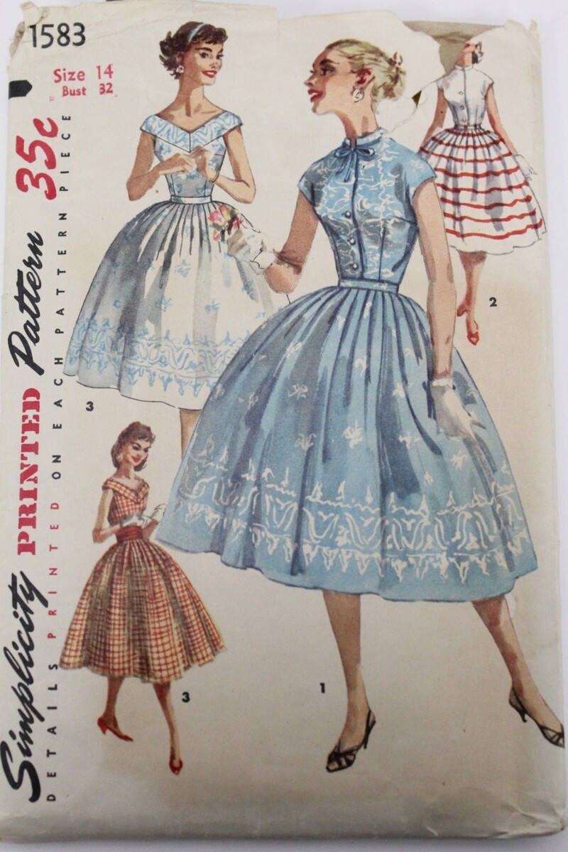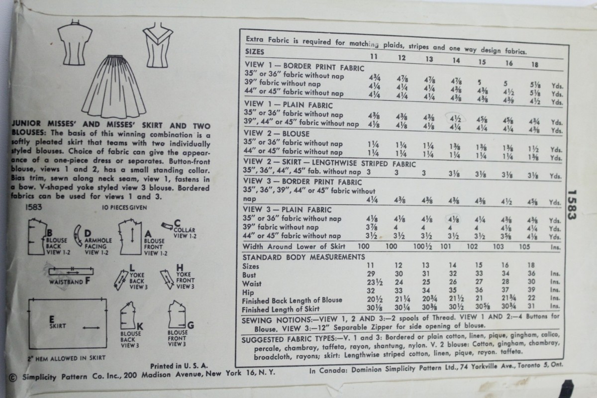 - VTG 1956 Sewing Pattern Simplicity #1583 Size 14 Bust 32 Full Skirt & 2 Blouses