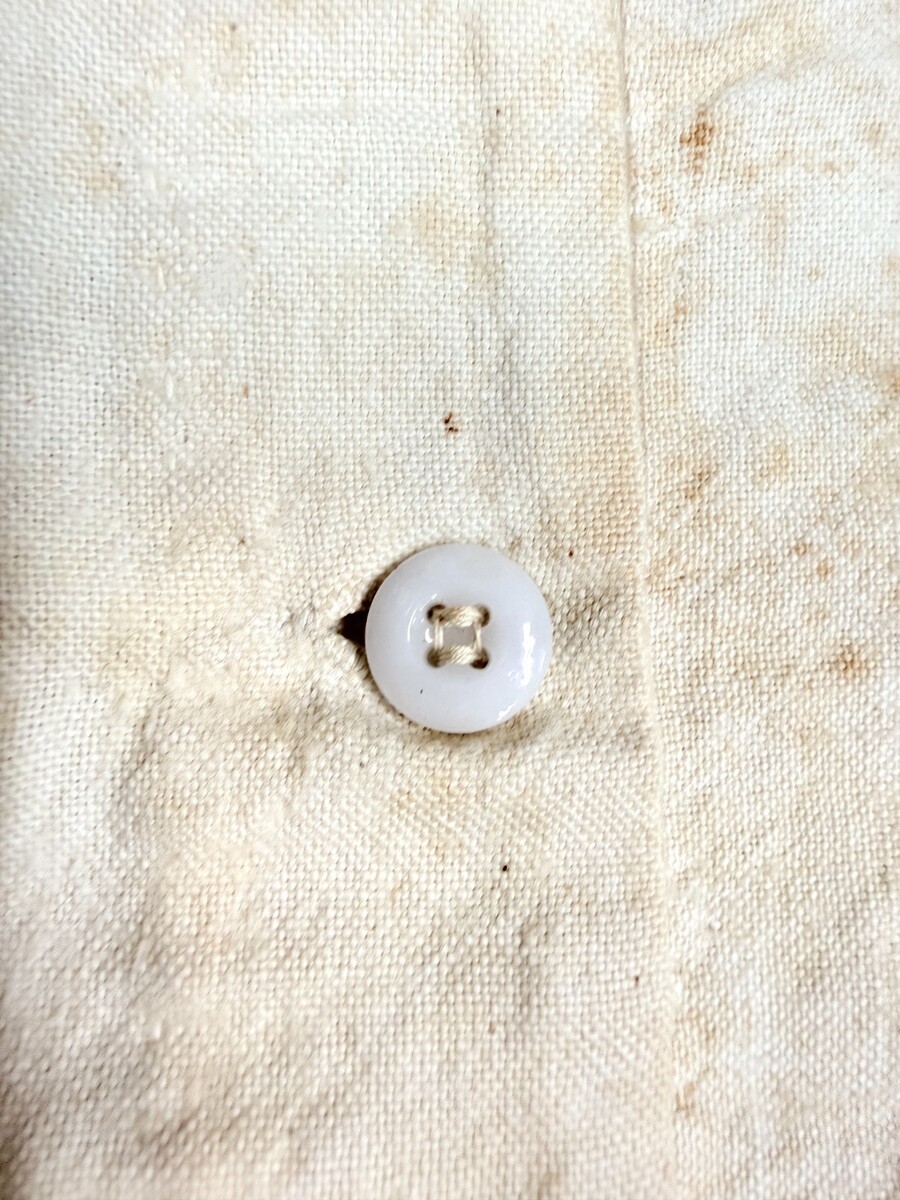This piece reflects early 20th-century domestic sewing traditions, when mothers and seamstresses made simple chemises and slips for everyday wear. The use of glass buttons and tatted lace hem detail was common from the late Victorian period through WWI, making it an excellent example of period children?s undergarments or doll dressmaking.