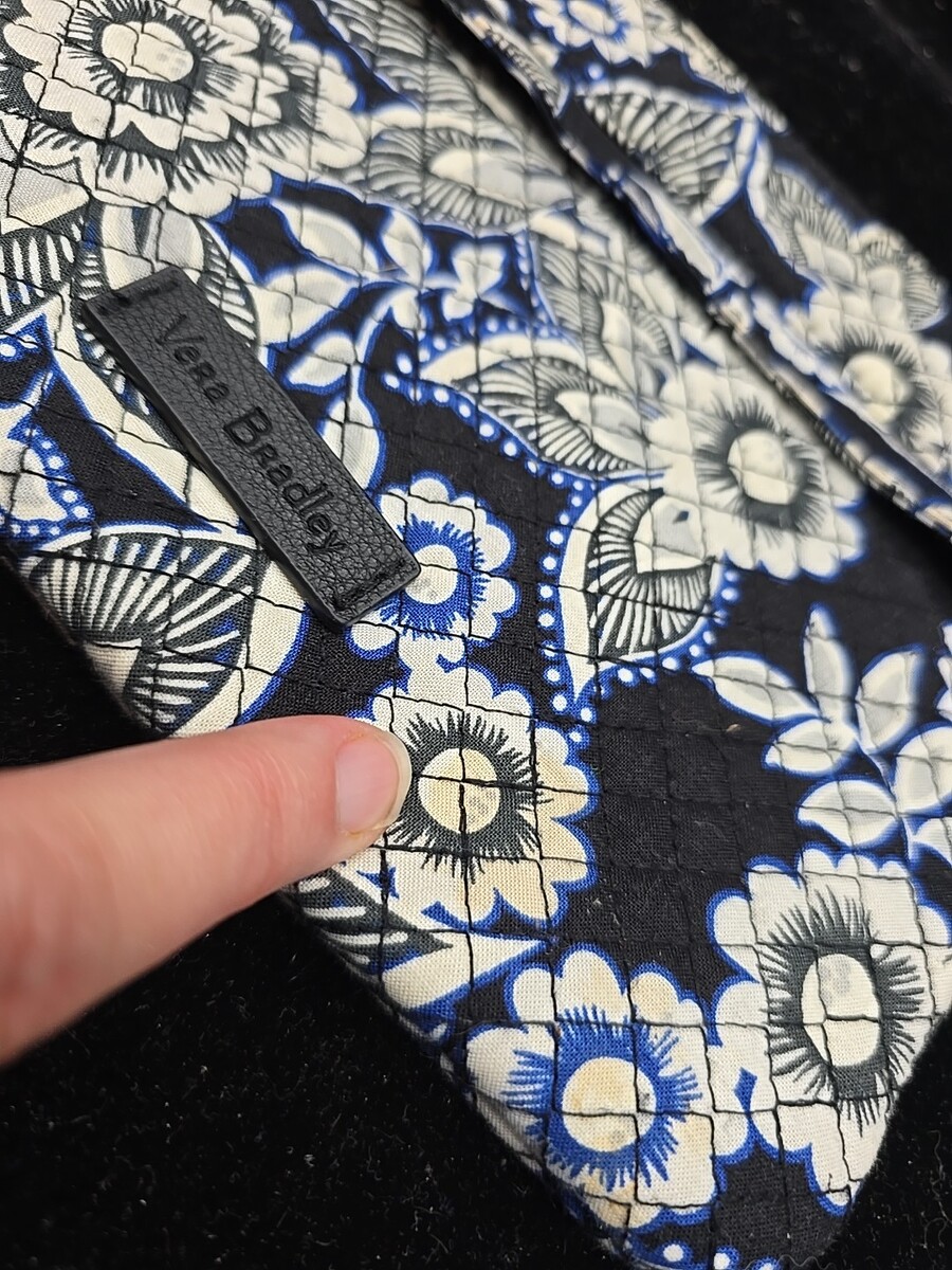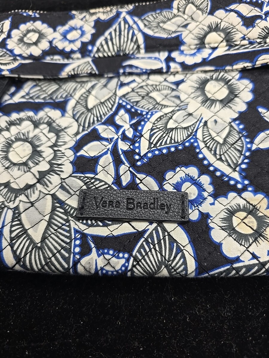 - Vera Bradley RFID Custom Crossbody 2/1 Purse Snow Lotus Black NO STRAP See pics