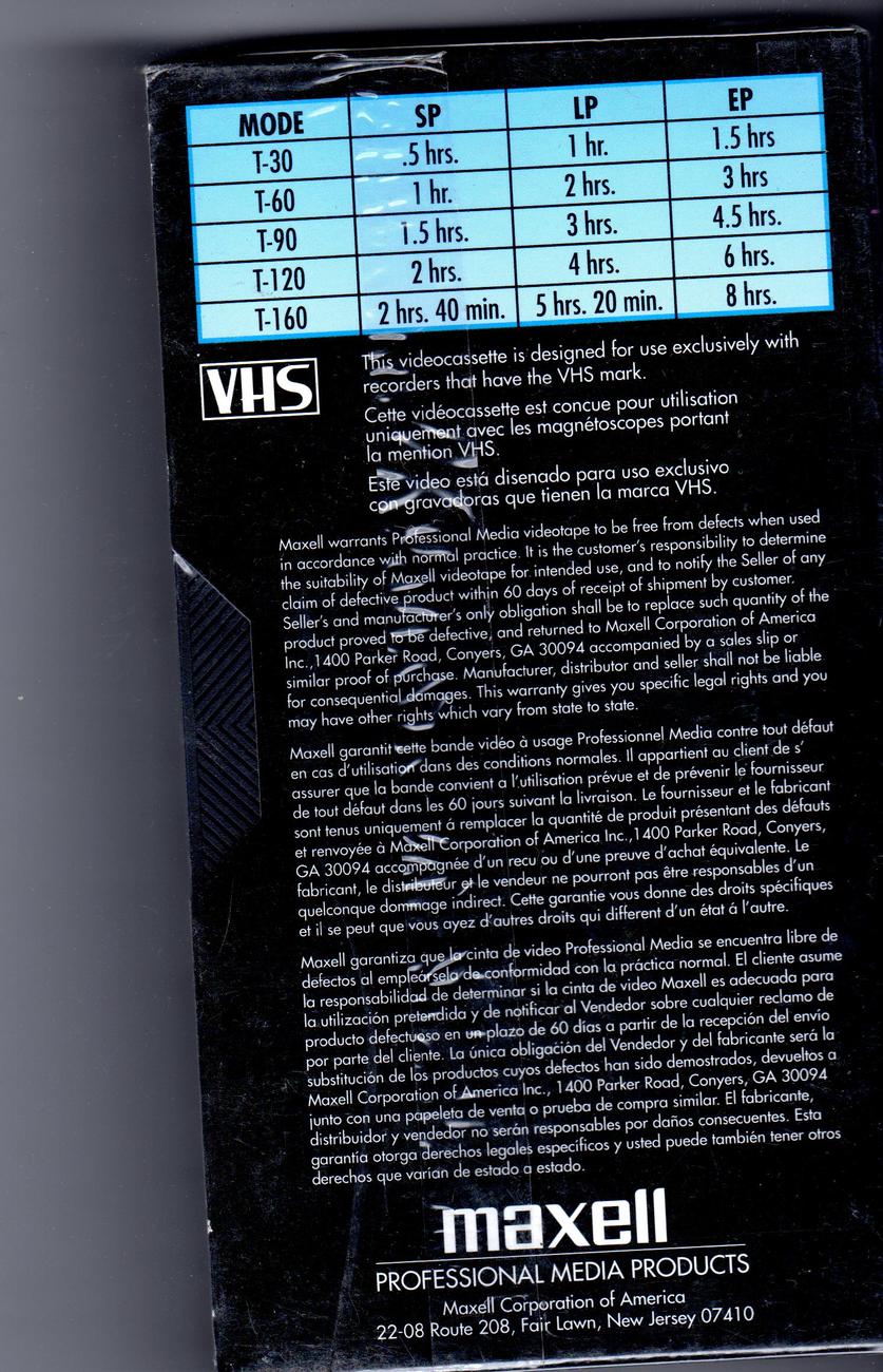 VHS Maxell P/I Plus T-30 VHS Blank Video Tape |