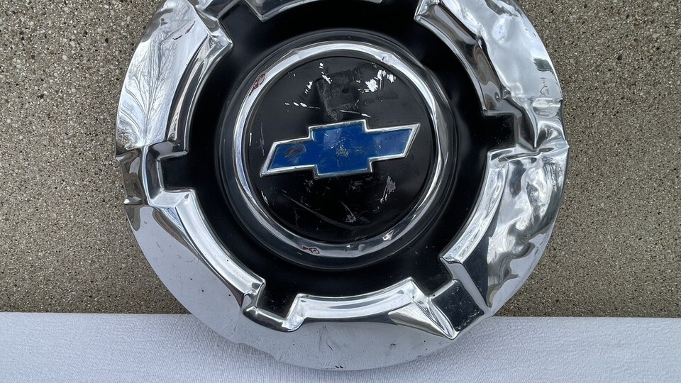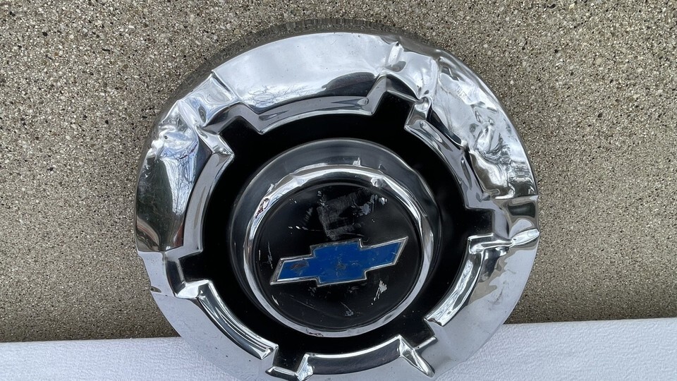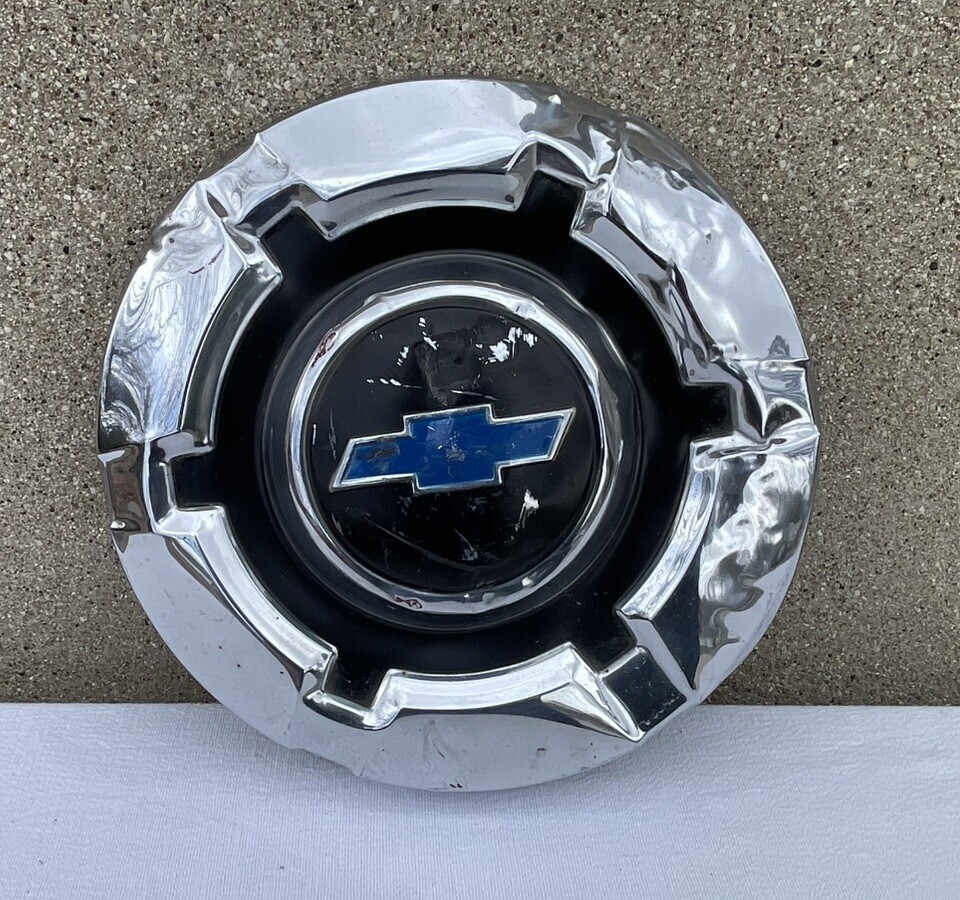 VINTAGE 60-70’s CHEVY 3/4 TON K20 TRUCK SUBURBAN BLUE LOGO DOG DISH 12” HUBCAP