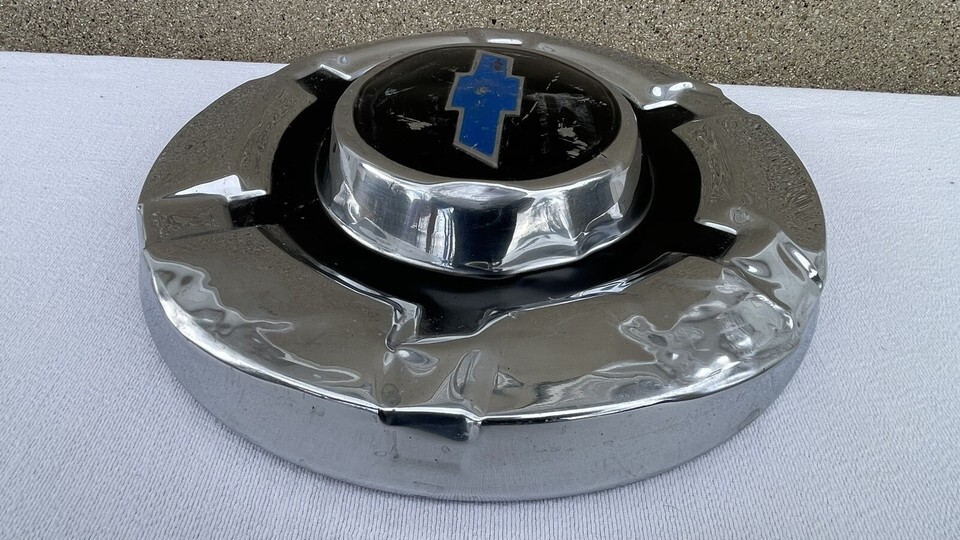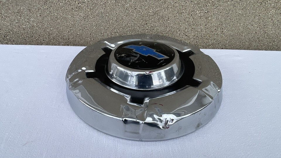 This vintage Chevy hub cap is a must-have for any car enthusiast. Made of high-quality stainless steel, this polished cap is designed for the rear and front placement on your vehicle. It is compatible with 16" and 16.5" factory wheels only, and features a beautiful blue logo dog dish design. This hub cap is perfect for those who appreciate the classic Chevy look, and is a great addition to any vintage car collection. It is made in the United States, and is a rare find for collectors. Don't miss out on the chance to add this unique piece to your collection.