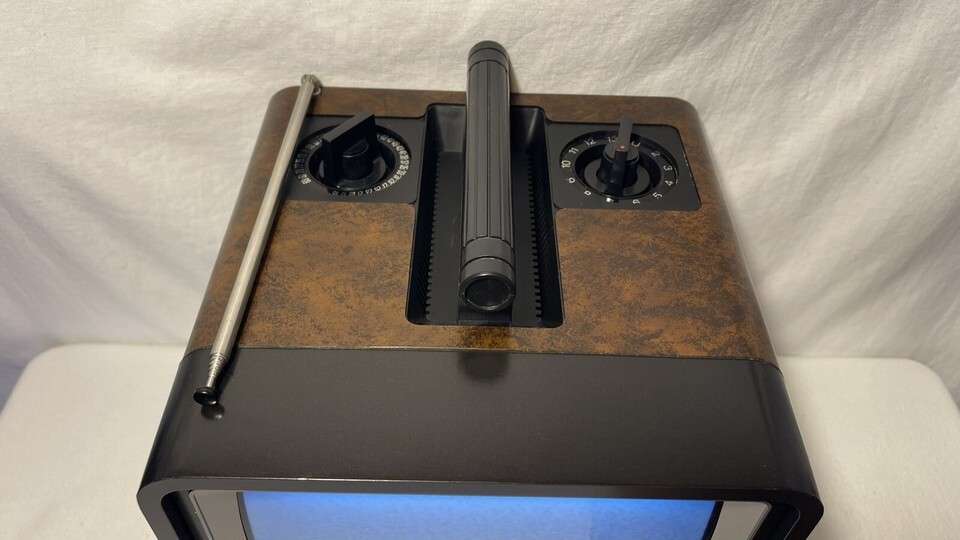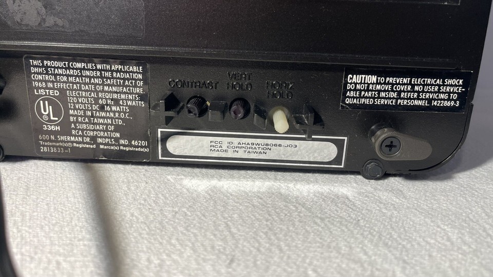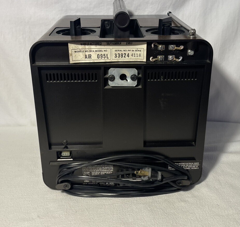 This vintage portable TV from RCA is a true gem for collectors and enthusiasts of analog electronics. With its classic black and white design, this TV is a timeless piece that brings back memories of the 1980s. It's fully functional and ready to be displayed, making it a great addition to any collection. The TV features a 9" screen and is equipped with a tuner, speaker, and headphone jack. It's also adorned with the RCA logo, adding to its vintage charm. Whether you're a fan of vintage electronics or simply looking for a unique piece to add to your collection, this RCA AFC-095L B W TV is a must-have.