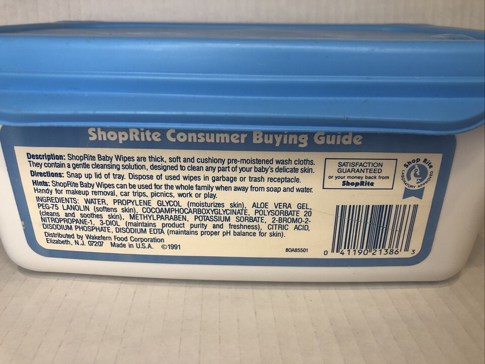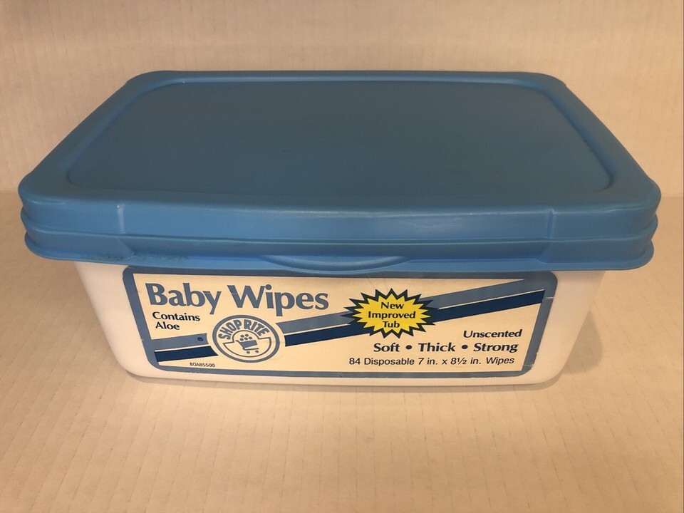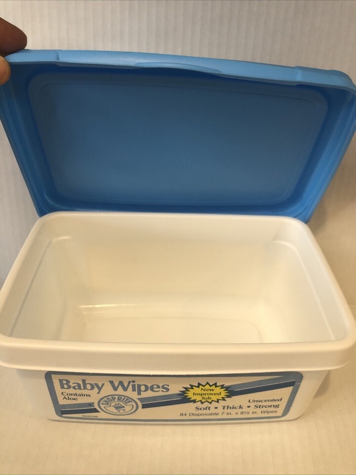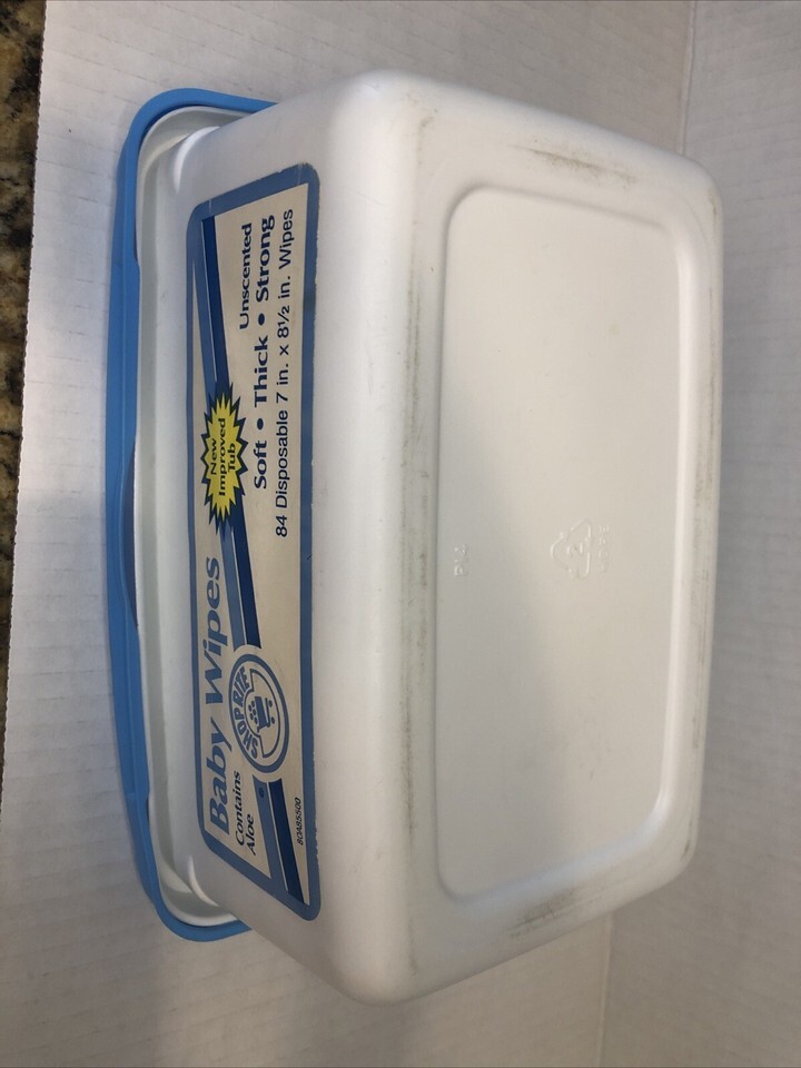 - Vintage Baby Wipes Empty Container 1991 Photo Prop Lid Is Loose