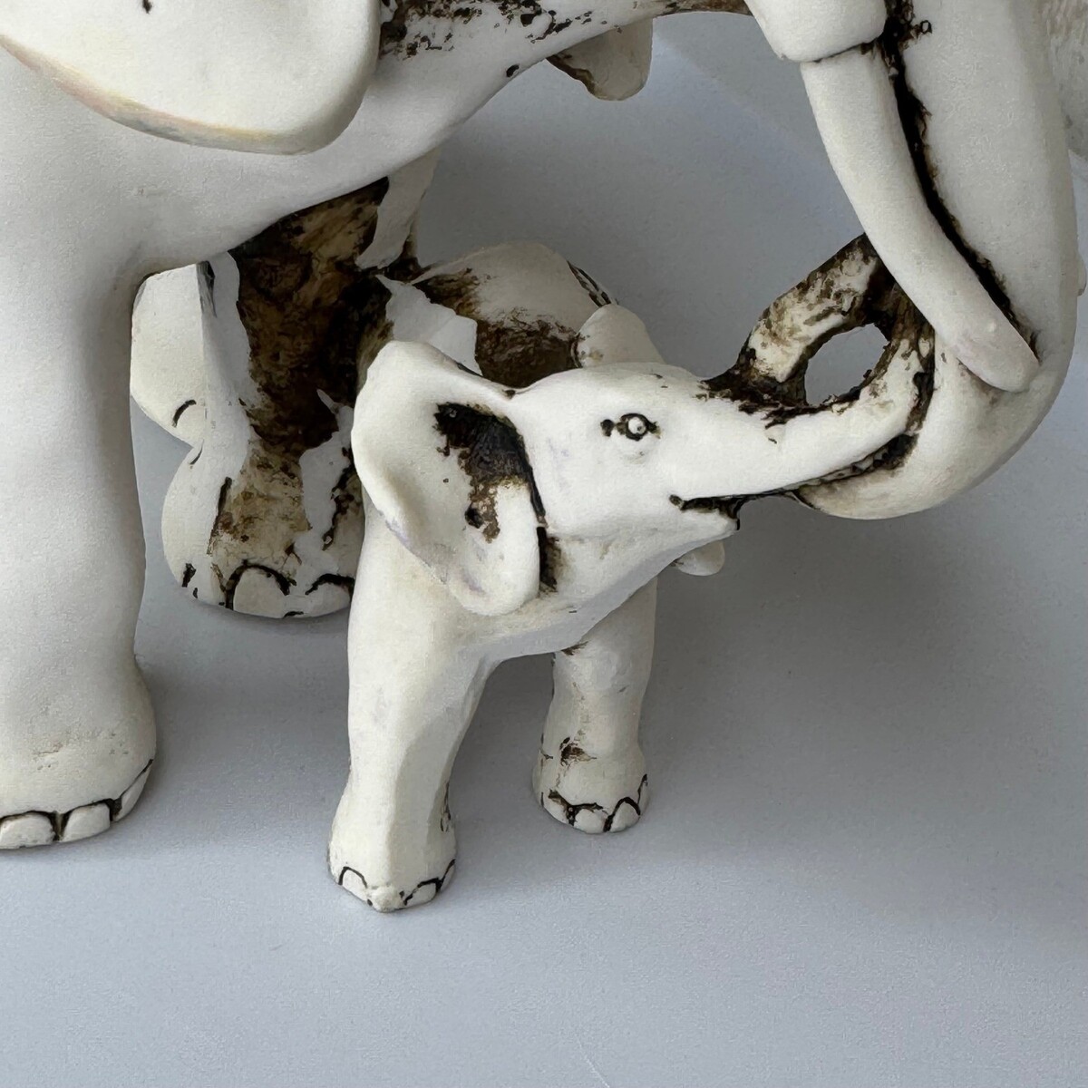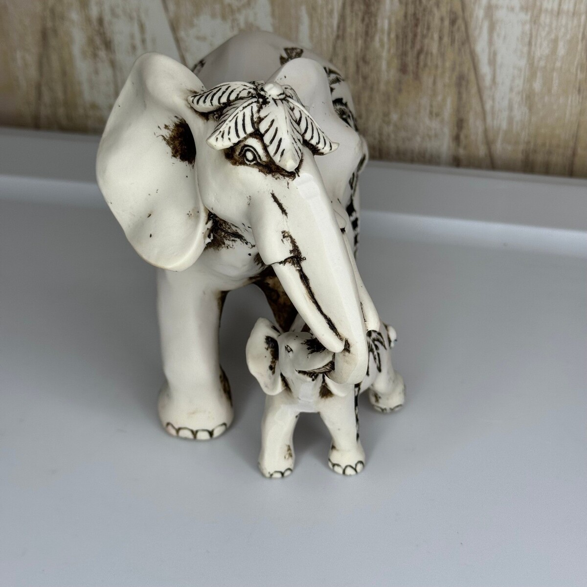 NO ISSUES APPROX. 5.5" IN HEIGHT AND 7.5" INCHES IN LENGTH Type: Figurine Material: Ceramic Subject: Fantasy Figure Theme: Fantasy Mythology Style: Ethnic Room: Living Room, Any Room, Office, Bedroom, Den Department: Adults Keywords: ceramic, figurine, elephant, mother and child, palm tree, tropical, vintage, desk decor, shelf decor, animal figurine, carved, unique gift, home accent