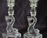 Vintage Dalzell Viking Clear Glass Dolphin Koi Fish Candlestick Mid-Century MCM