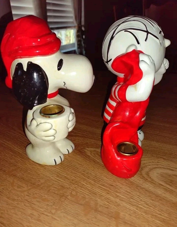 - Vintage Hallmark Snoopy Linus Peanuts Candle Holders 8" Tall
