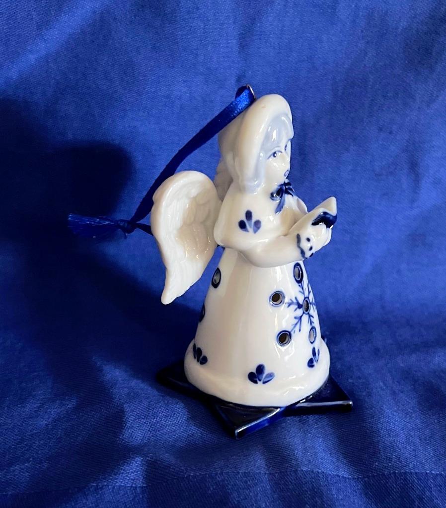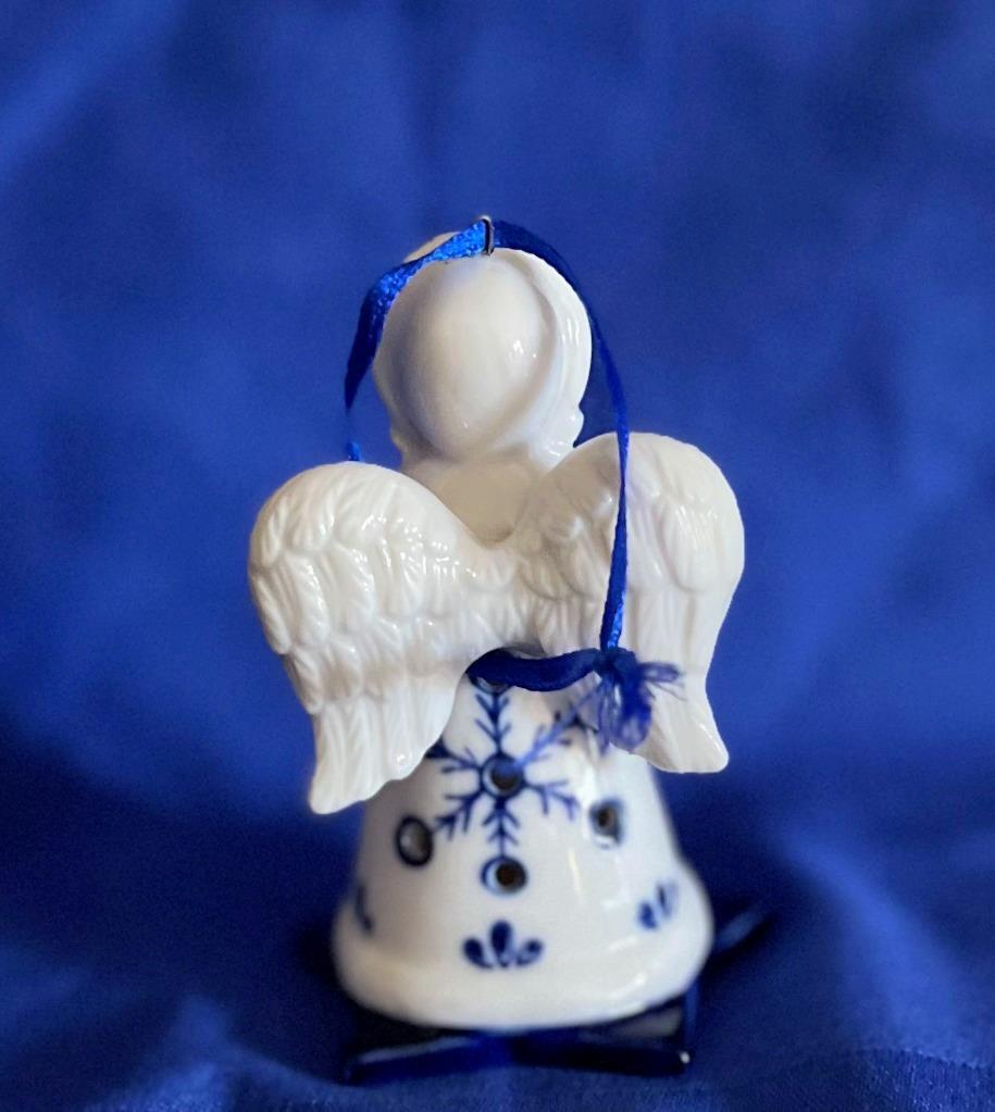 Vintage Kurt Adler Angel Ornament w Book Delft Blue Porcelain 3.5" Tall