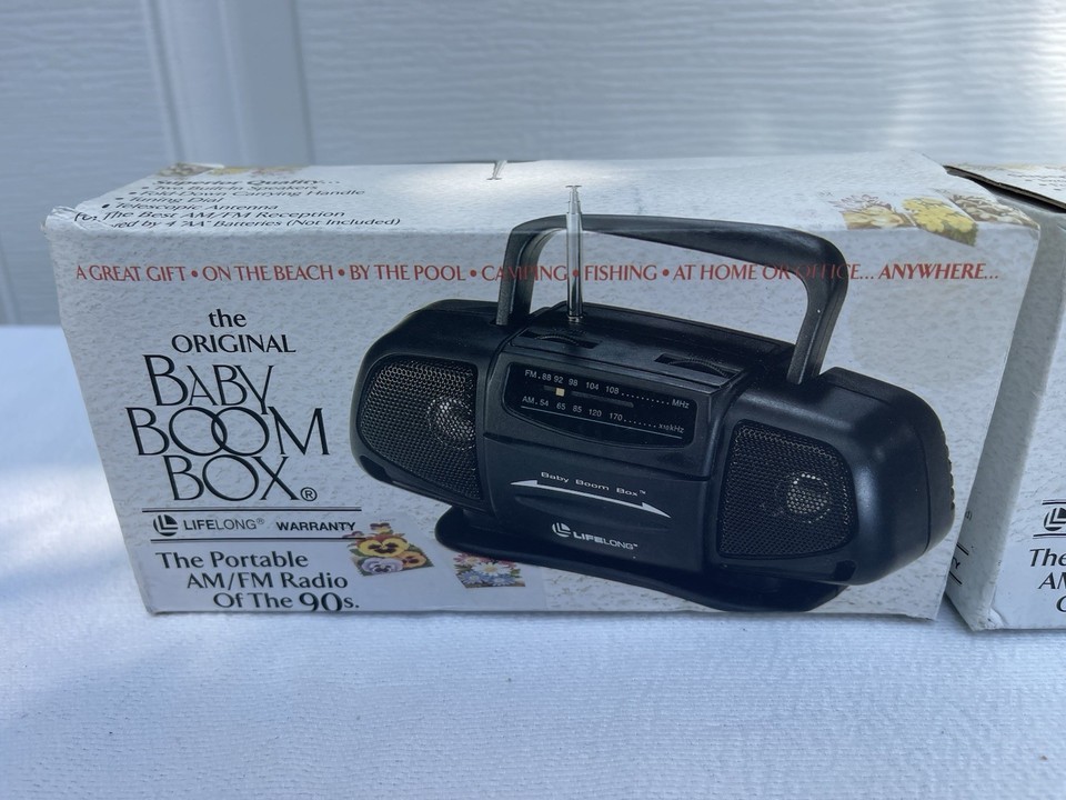 Vintage Lot-2 The Original Baby Boombox by Lifelong Portable AM/FM Radio 90?s. Condition is New. Shipped with FedEx Ground or FedEx Home Delivery.