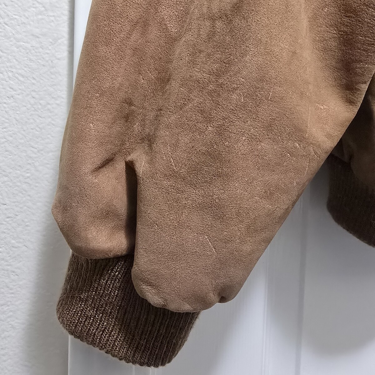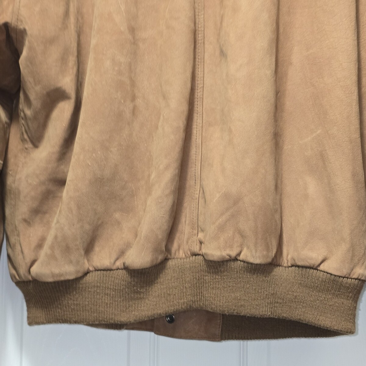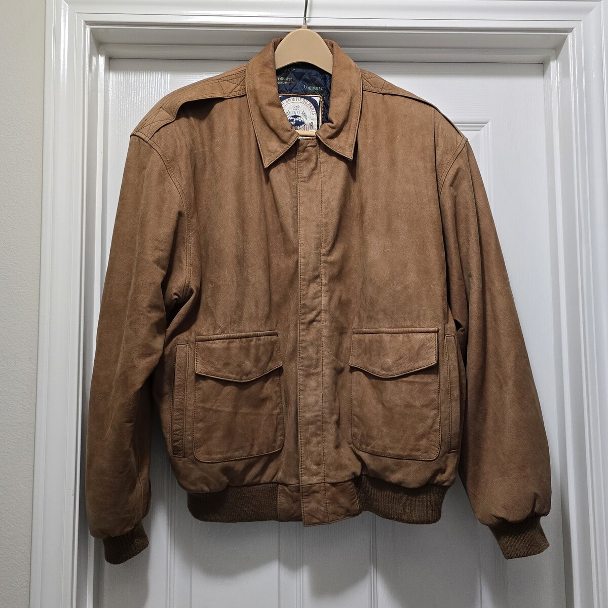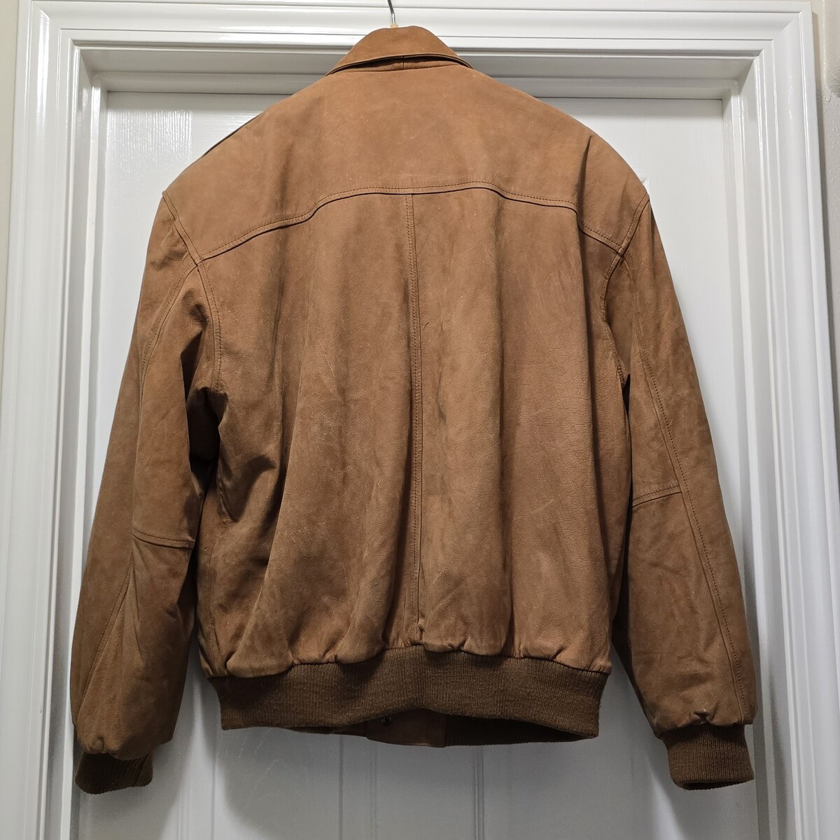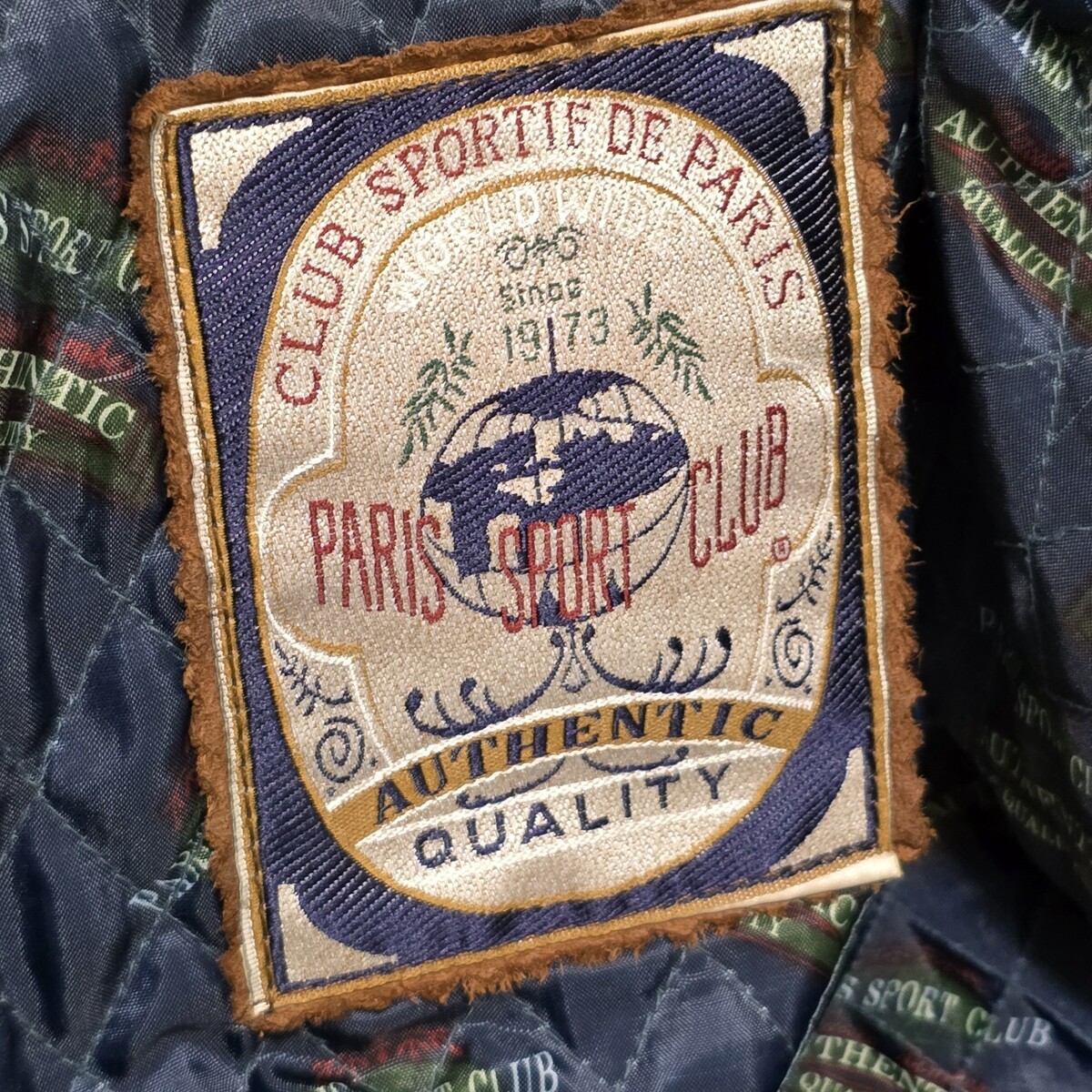 Vintage Paris Sport Club Men?s bomber jacket Size: Extra Large (XL) Actual measurements: Chest: 51 inches (pit to pit, doubled) Length: 28 inches (shoulder to hem) Shell: Genuine leather, suede finish in brown Ribbed knit cuffs and waistband Zip front closure with pointed collar Two large front flap pockets / Two Side Hand Pockets Quilted polyester interior lining with repeating Paris Sports Club logo/wording Shoulder Pads Made in Korea Classic bomber/aviator style Care: Dry clean by leather specialist only ***Normal signs of wear?including small marks, scuffs, and one minor pen mark on the back?but very minimal. Excellent overall condition. Zipper work well, lining is intact, and the jacket remains soft and wearable. Please see photos.*** SMOKE FREE HOME! SUPER FAST SHIPPING!