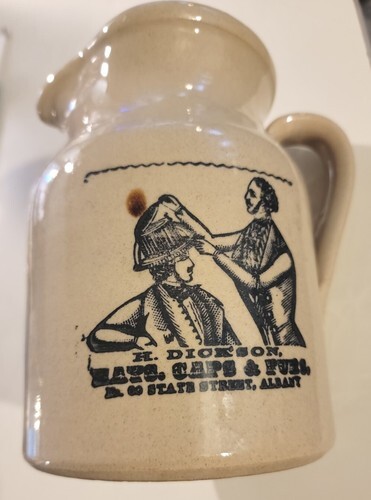 - Vintage Pearson's of Chesterfield Stoneware Pitcher w/ Blue Promotional Graphic