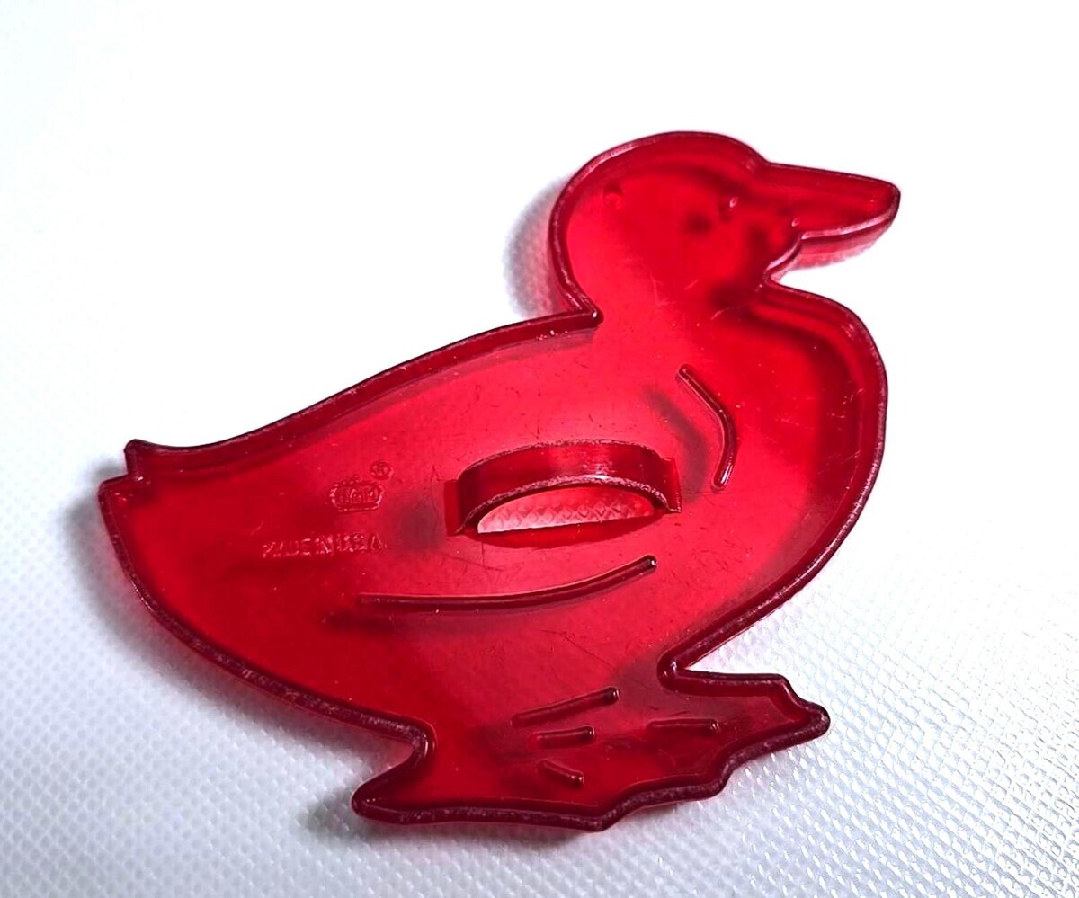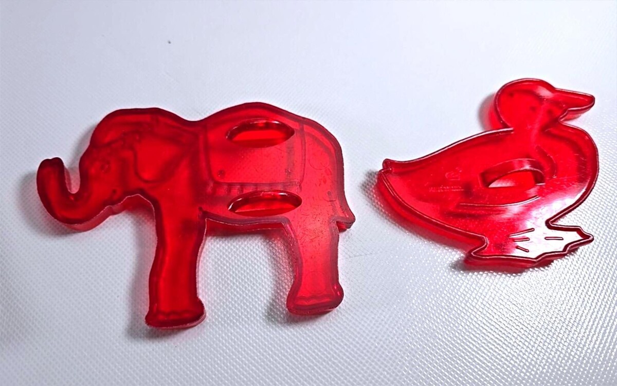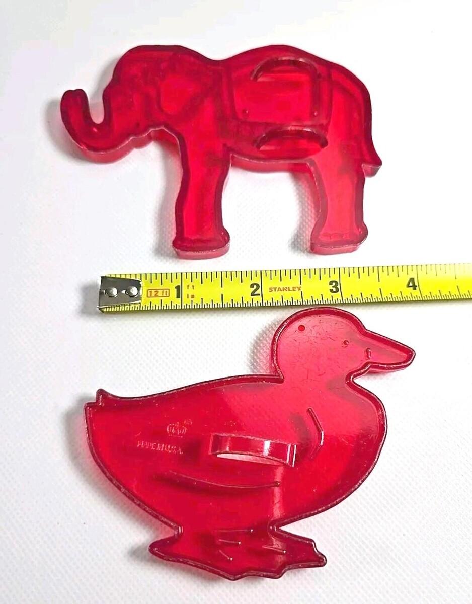 Vintage Red Plastic Cookie Cutter Lot Elephant Duck Mid Century 3in 1950s