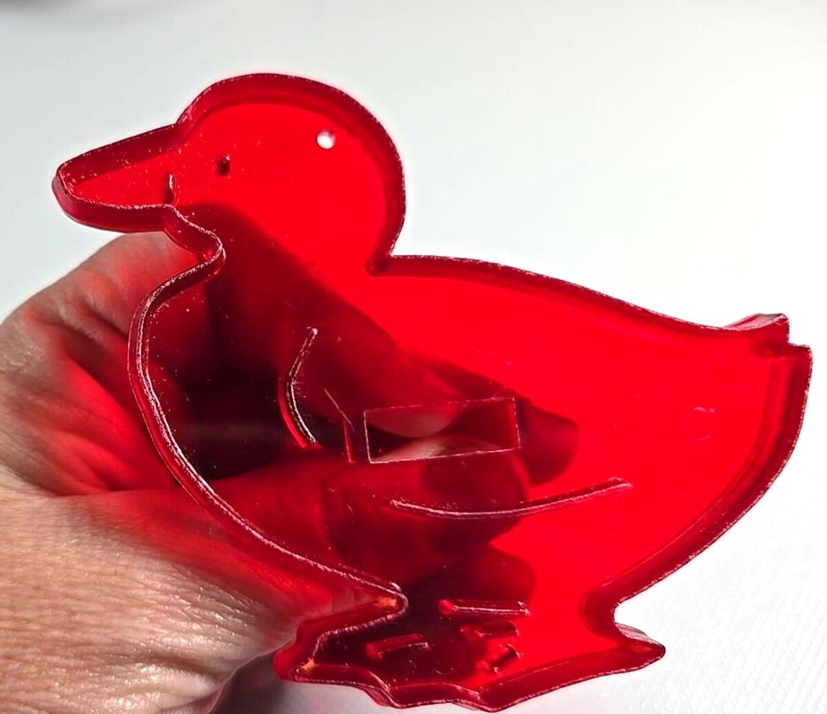 These translucent red cookie cutters?an elephant and a duck?add retro charm and crisp shapes to holiday or everyday baking. Their mid-century plastic bodies are lightweight, durable, and display-worthy for vintage kitchen decor. ? Pair of mid century translucent red plastic cookie cutters elephant and duck each about 3 in tall ? Unbranded 1950s USA kitchenware ideal for sugar cookies play dough crafts or farmhouse display ? Bright color and sturdy construction clean gently used condition no cracks ready to use or gift ? Cottage core retro baking collectible fits mod kitchen shelf candy jar or photo prop themes