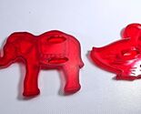 Primary image for Vintage Red Plastic Cookie Cutter Lot Elephant Duck Mid Century 3in 1950s