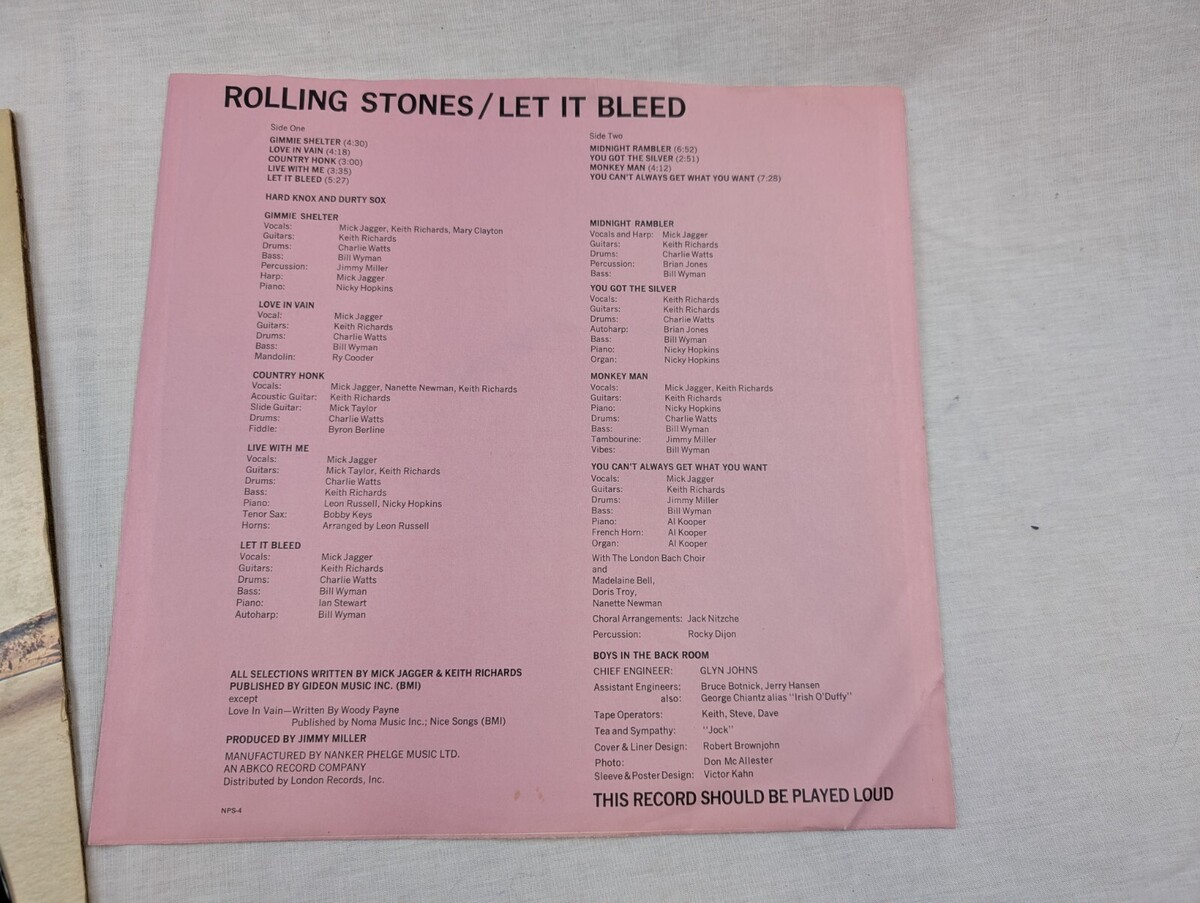 - Vintage ROLLING STONES Let it Bleed Vinyl LP Pink Sleeve LONDON Stereo NPS4 VG