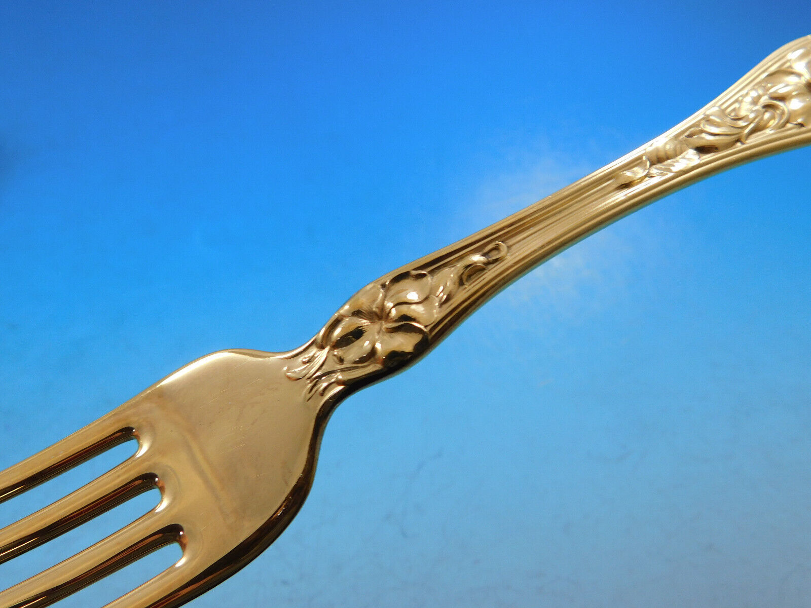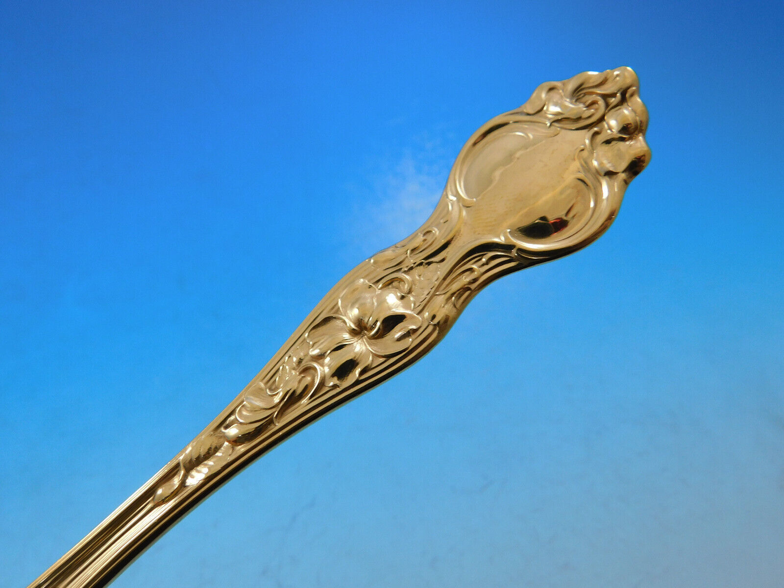 Superb Dinner Size Violet Gold by Wallace Sterling Silver Flatware set - 61 pieces. This set is vermeil, completely gold-washed over sterling silver. This set includes:
