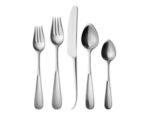 The set consists of FOUR each: dinner fork (3361012, 198mm), a dinner knife (3361017, 220mm), a dessert spoon (3361021, 181mm), a lunch or starter fork (3361022, 179mm) and a large teaspoon (3361031, 148mm). It is made from stainless steel with a matte finish and suitable for a dishwasher.
