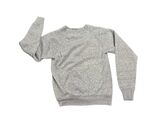 1960s?1970s vintage small heather gray sweatshirt in a cotton blend with fleecy backing, featuring raglan sleeves, elastic waistband, and 3" ribbed cuffs. Classic mid-century athletic wear in a versatile neutral tone.