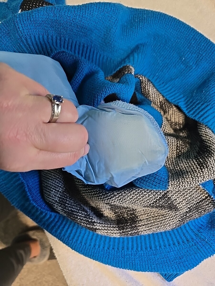 One shoulder pad is askew - like when the pads in a swimsuit or sports bra get bent. It can maybe be put back correctly?