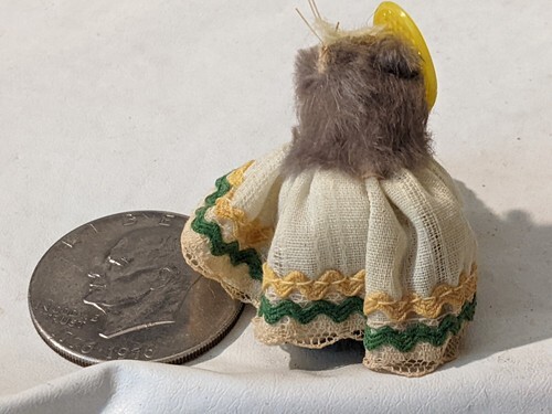 Vtg Original Real Fur Little Mouse Factory USA mouse Tennis Racket Yell Green