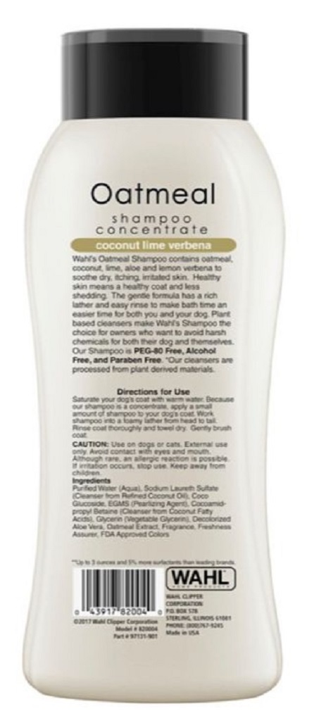 - Wahl Oatmeal Dog Shampoo Concentrate, Coconut Lim Verbena