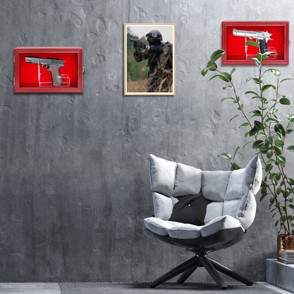 STURDY WALL MOUNTING: Keep your gun in a safe place, making it crucial for every household with firearms. Avoid casually storing handguns in drawers! Choosing a safe display cabinet is truly important. By hanging it in your study, office, man cave, or exhibition hall, you will receive countless praises.