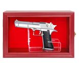 Walnut Wood Gun Display Case Handgun Pistol Revolver 98% UV Red Shadow Box Stand