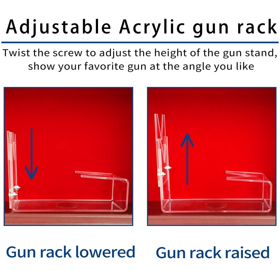 HIGH-QUALITY CRAFTSMANSHIP: Our gun display case is meticulously crafted using top-grade materials. The soft red velvet background exudes a sense of luxury, while the sturdy solid wood frame ensures its durability. The acrylic panels have a transparency of up to 92% and provide up to 98% UV protection, ensuring clear visibility of the firearms while effectively preventing dust and scratches.