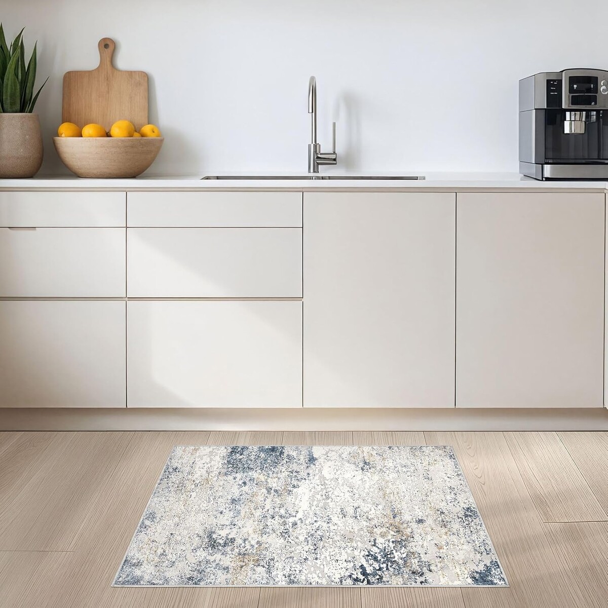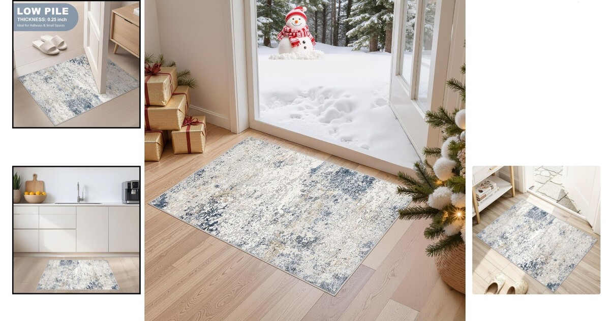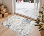 - Washable Area Rug Beige Winter Blue Small 2 x 3 Entrance Hallway Non-Slip NEW