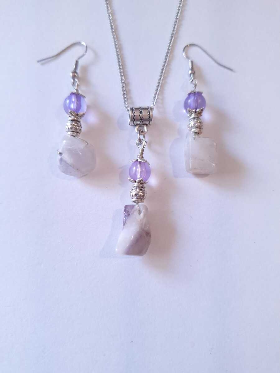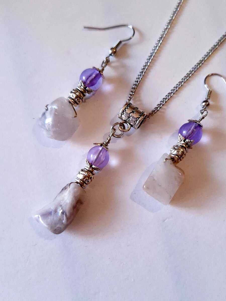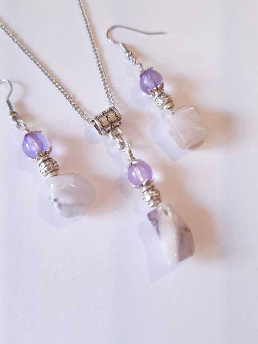 Raw White Amethyst Victorian set necklace earrings Bohemian necklace and earrings .