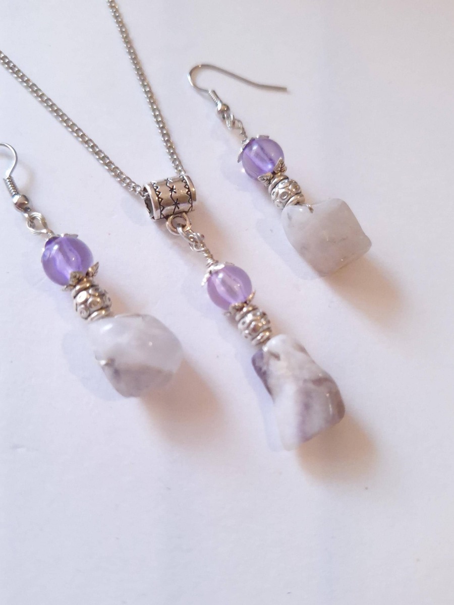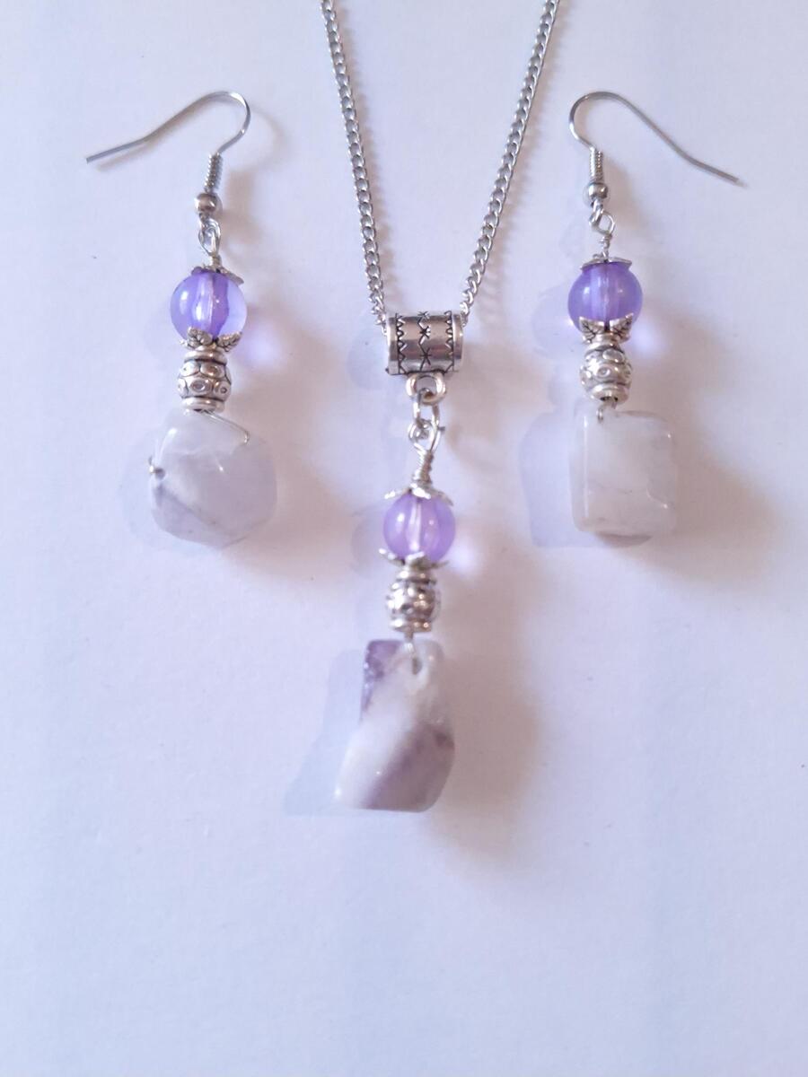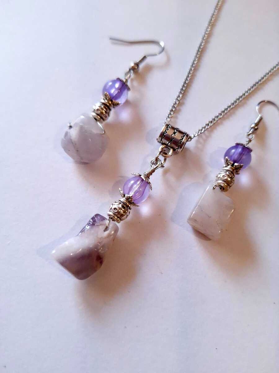Raw White Amethyst Victorian set necklace earrings Bohemian necklace and earrings .