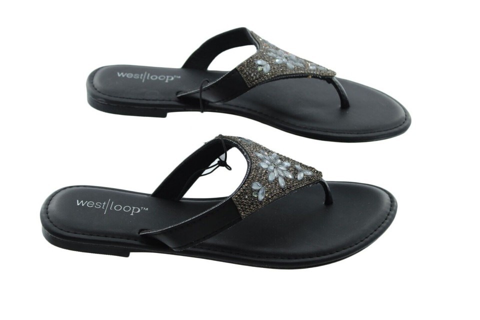 - Women Sandals West Loop Women’s Black Thong Cushioned Insole Sandals Size S 5/6