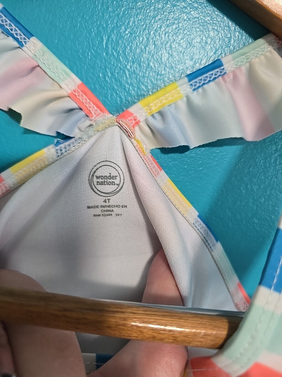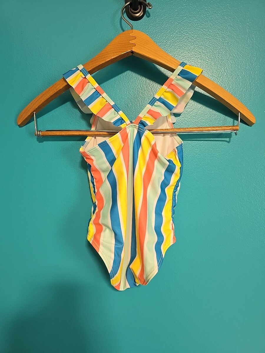 - Wonder Nation Girls 4T Swim Suit Size Stripe 1 Piece Colorful Ruffle Swimsuit