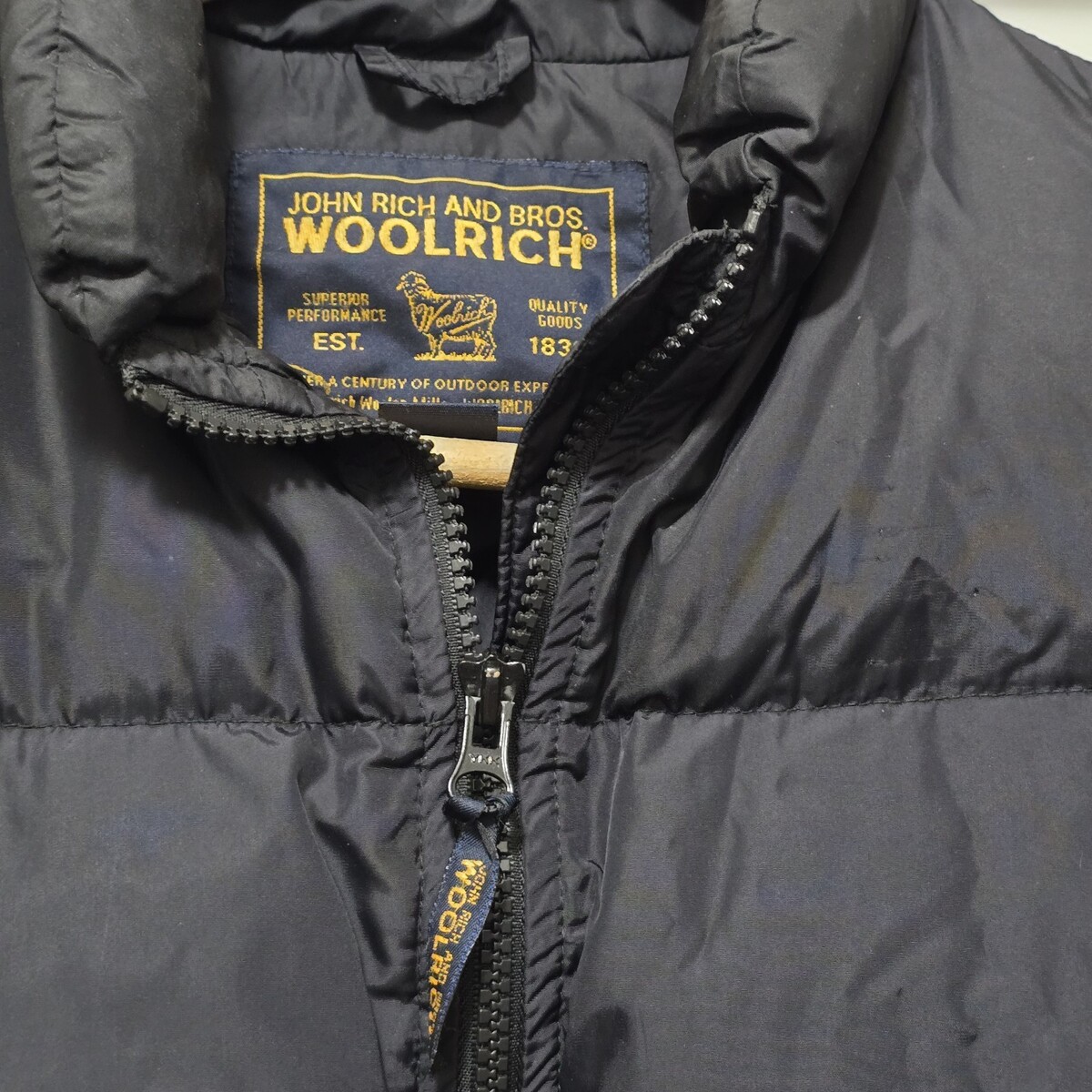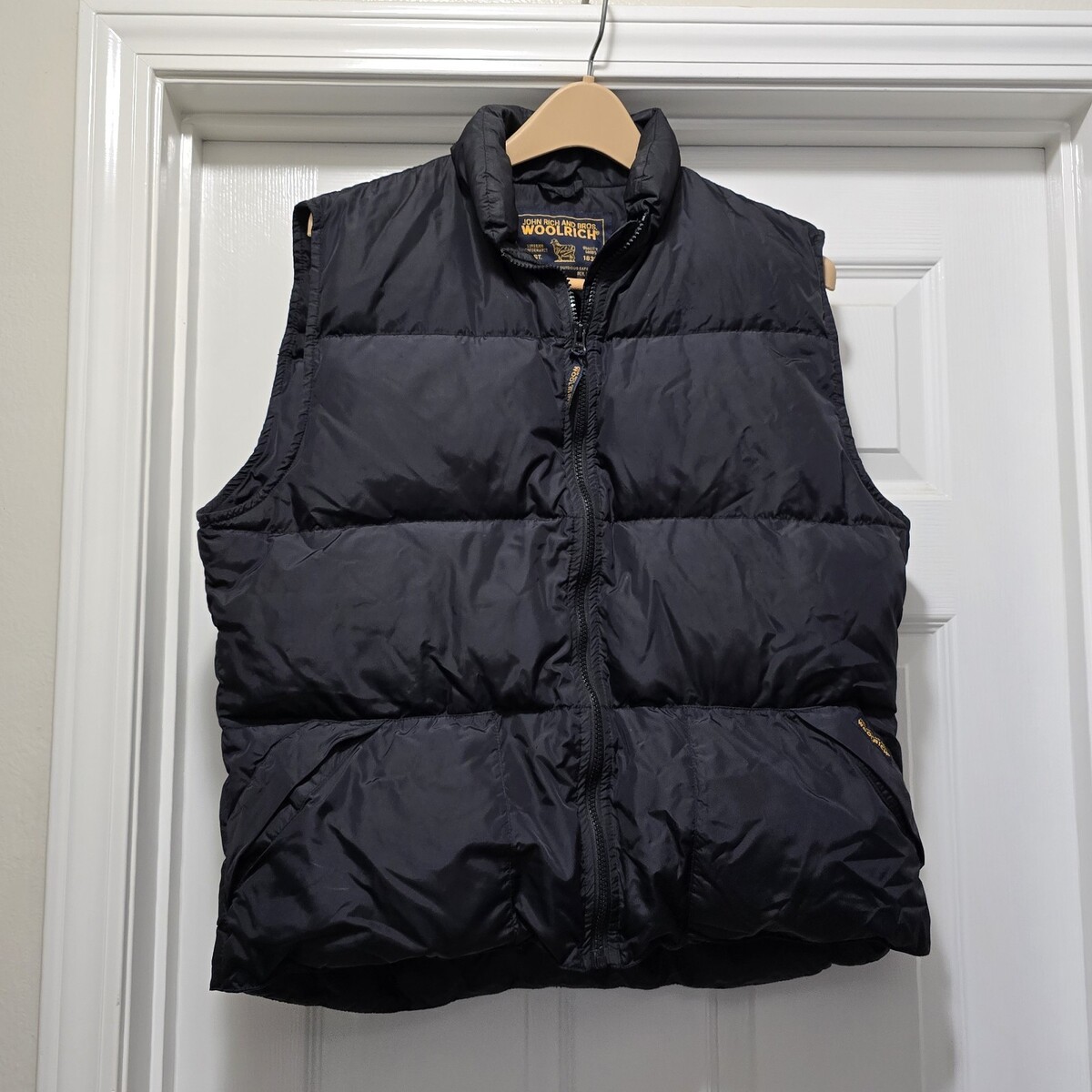 Woolrich John Rich Bros insulated down vest Men?s size Large Black nylon shell with genuine duck down fill Full zip front with branded Woolrich pull Two front hand pockets Lightweight and warm for outdoor wear or layering Excellent Condition. Please see Photos. SMOKE FREE HOME! SUPER FAST SHIPPING! Table