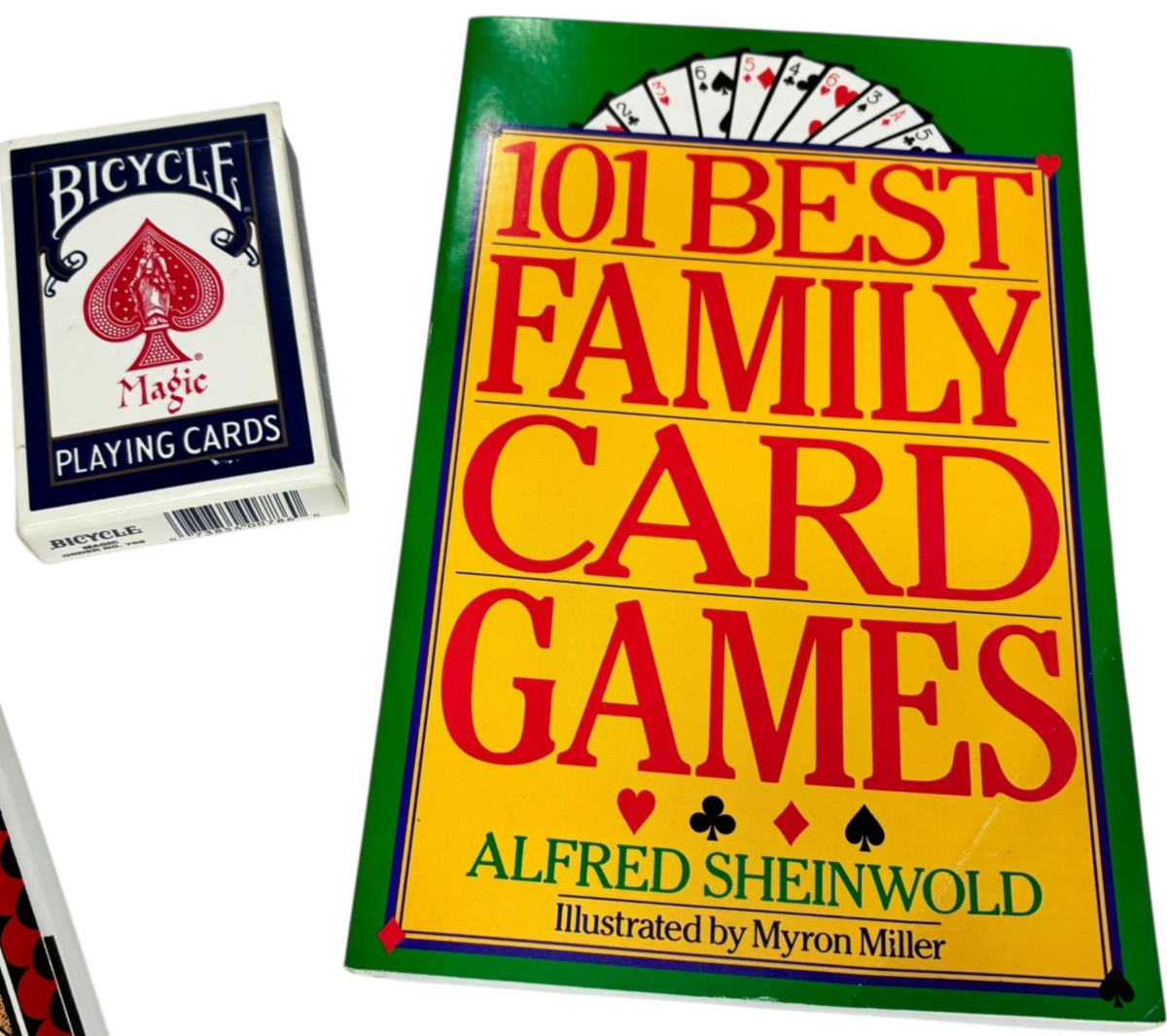 Worlds Greatest Card Tricks and Games collectors gift edition in wood box Includes: Bicycle Magic Playing Cards Order No 786 The U.S. Playing Card Co. USA - Blue (pre-owned) Red playing cards (new, sealed) Worlds Greatest Card Tricks and Games book 101 Best Family Card Games book Scorepad Wooden box with slide cover (has a crack at one corner) FAST SHIPPING!!! Buy with confidence. Check out our reviews.