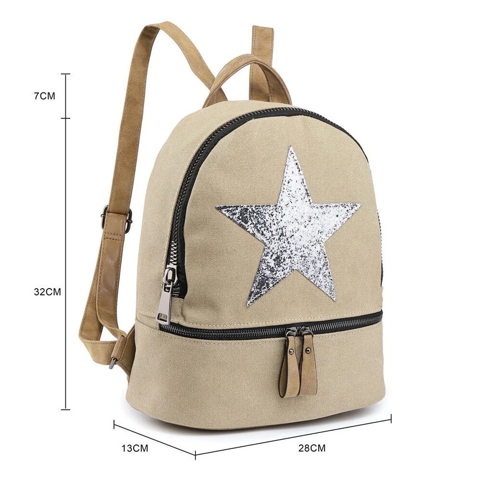 Canvas Star Backpack. A simple but stunning star rucksack making it a staple accessory for use all year round. Inside reveals the beige lining, with smaller zip / slip pockets for extra secure storage. Adjustable straps and outer zipped pocket. Yellow Adjustable shoulder strap 28W x 13D x 32H (39cm with straps) cm Track Page Views With Auctiva's Counter