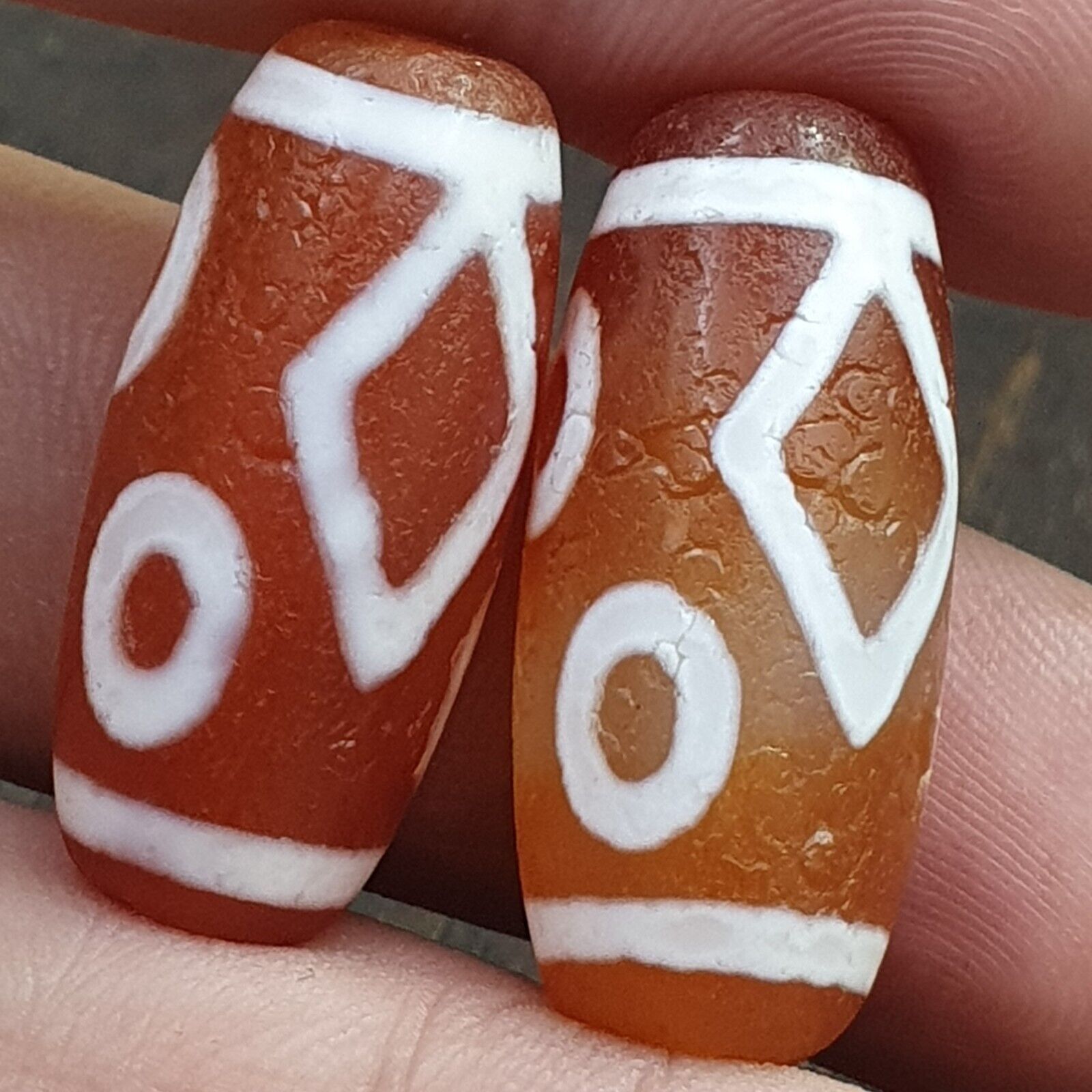 - lotto 2 antiche perle di agata incise HIMALAYANE indo tibetane dell'Asia cent...