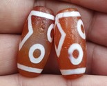 lotto 2 antiche perle di agata incise HIMALAYANE indo tibetane dell'Asia cent...