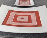 Pair of red and silver metallic serving plates one is 6" x 6" the other is 11.5" x 7.5"